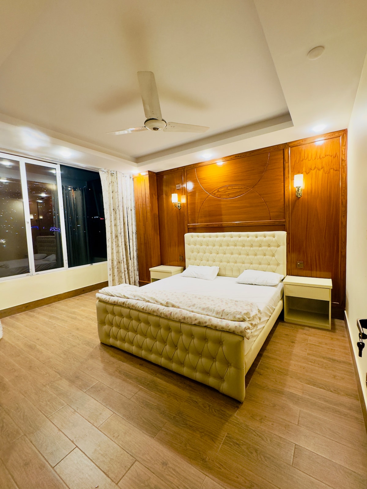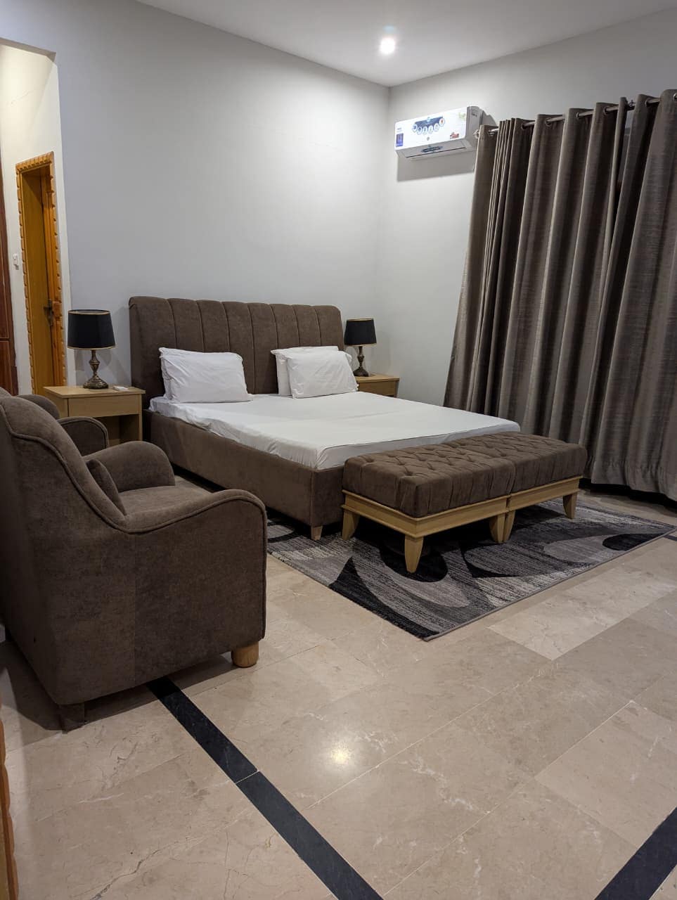 Luxury 2-bedroom penthouse with a master bedroom, separate living and dining area, and a small kitchen with microwave, refrigerator, and hotplate. Spacious and comfortable with beautiful city views, ideal for families and long stays. Located near Earthquake Memorial Bridge, Neelum & Jhelum River View Point, Red Fort (Rutta Qila), Gojra Bazaar, Subri Lake, and Dhani Waterfall. Perfect location for tourists and travelers.
