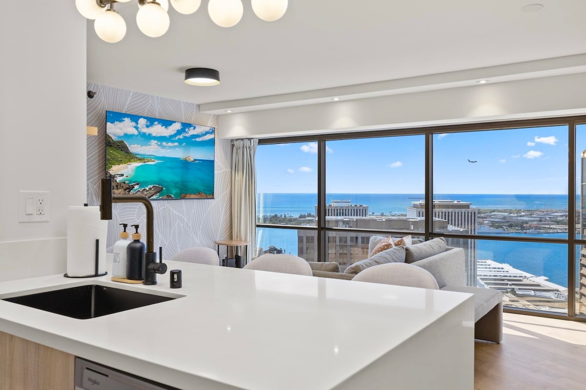 Doživite utjelovljenje luksuza uz ovaj zadivljujući, prostrani studio sa pogledom na okean koji se nalazi na 32. spratu penthausa u samom srcu Vaikikija. S pogledom na okean i Diamond Head koji oduzima dah, ovaj otmjeni studio daje sve od sebe da premaši sva očekivanja. Uživajte u vrhunskoj udobnosti i eleganciji dok uživate u pogodnostima boravka u centru Vaikikija, okruženi živopisnom energijom i ljepotom ove poznate destinacije na plaži.