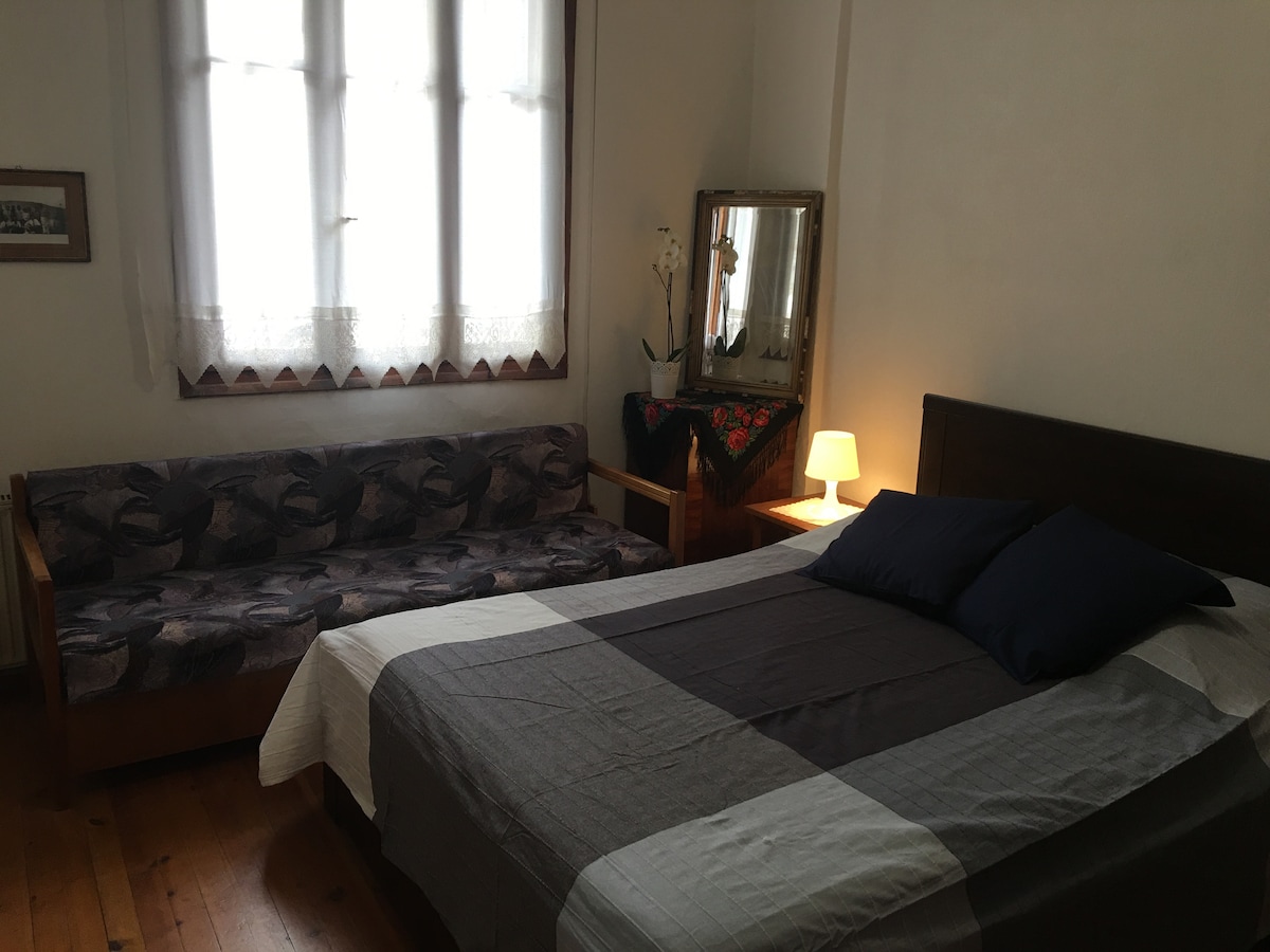 Kuća se nalazi u području Kalamarija (20 minuta od centra autobusom). Nalazi se u prizemlju i ima tiho dvorište okrenuto prema podu. Tu su potpuno opremljena kuhinja i kupatilo sa mašinom za pranje veša za odeću, velika dnevna soba i dve prostrane spavaće sobe. Može udobno da primi 4 osobe (jedan bračni krevet i 2 odvojena kreveta). Stambena zgrada je mala i živim dva sprata iznad za sve što vam treba.