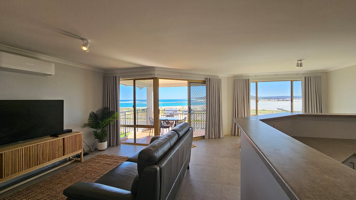 Četiri godine nakon što je ciklon Seroja uništio većinu našeg objekta, uzbuđeni smo što ćemo ponovo pokrenuti našu vrhunsku luksuznu vilu na obali 3 x 2 od Uskrsa 2025. godine. Mnogi kažu da su naši pogledi najbolji u gradu. Apsolutno će vam se svidjeti naša vila koja se nalazi u Pelican Shore Villas (jedinica 6). Predivan pogled na okean i rijeku iz glavne spavaće sobe, kuhinje/ salona / trpezarije i unutrašnjeg dvorišta. Može da spava do 7 ljudi. Bazen/roštilj u sklopu objekta. 5 minuta hoda do grada, plaže, kafića/pekare, pabova/hotela, hemičara itd. Pametni TV od 75 inča/besplatan Wi-Fi.