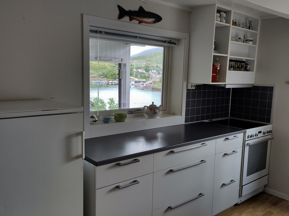 Da li želite da odsednete na prelepom udaljenom mestu, dok ste još uvek povezani sa gradom? Grøtfjord se nalazi na samo 40 minuta vožnje od Tromsa. U blizini nekih od najnevjerovatnijih planina, fjordova, skijališta i područja za penjanje. a. Veliki stan sa 1 spavaćom sobom koji ima bračni krevet i jedan krevet na sprat. U dnevnoj sobi se nalazi kauč na rasklapanje. Svi sadržaji, peškiri i drva za ogrev su uključeni! Da biste došli do grøtfjorda, potreban je automobil. Domaćini žive u drugom dijelu kuće.