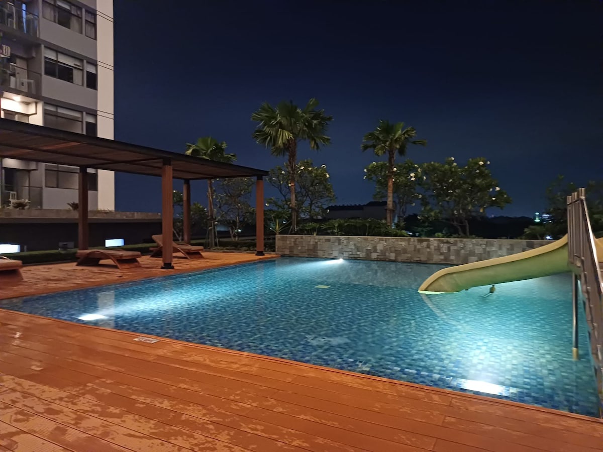 Uživajte u elegantnom doživljaju u ovom smještaju koji se nalazi u centru grada. Stan Green Sedayu je integrisan sa tržnim centrom Green Sedayu sa mnogo sadržaja. Takođe je prilično blizu aerodroma. Zakoračite u svoje udobno utočište i dočekat će vas šarmantni privatni balkon i veliki prozor s kojeg se pruža zadivljujući pogled na grad. Opustite se i uživajte u boravku! (Bazen i teretana su dostupni za iznajmljivanje na najmanje 6 mjeseci🙏)
