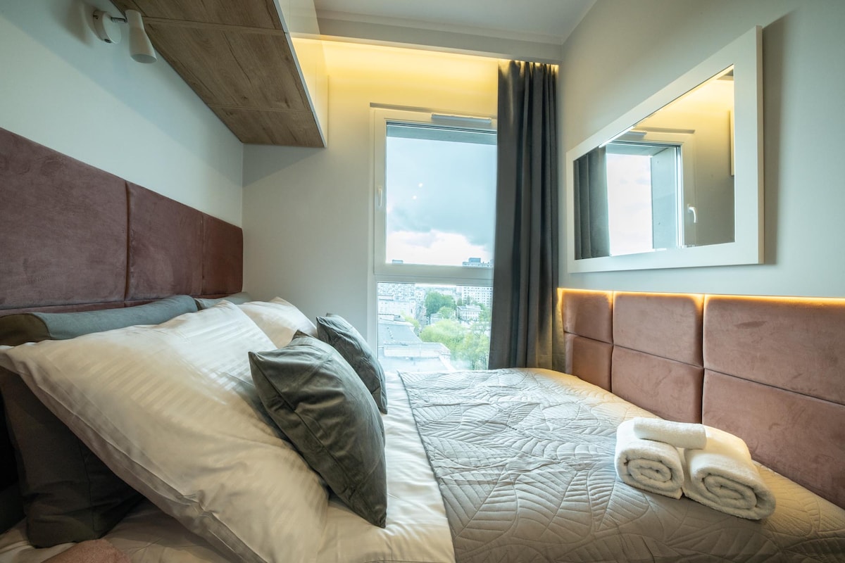 Spacious, modern apartment with a huge living room, a big balcony and a view over the city, in the heart of Lodz, but in a calm and quiet neighbourhood, located in luxurious estate. Close to the vibrant main street of the city - Piotrkowska with many restaurants and clubs. Beautiful park, tennis courts, concert and event halls, Expo Lodz, a cinema and a shopping mall in the neighbourhood, walking distance from the apartment. Have a great time in Lodz!