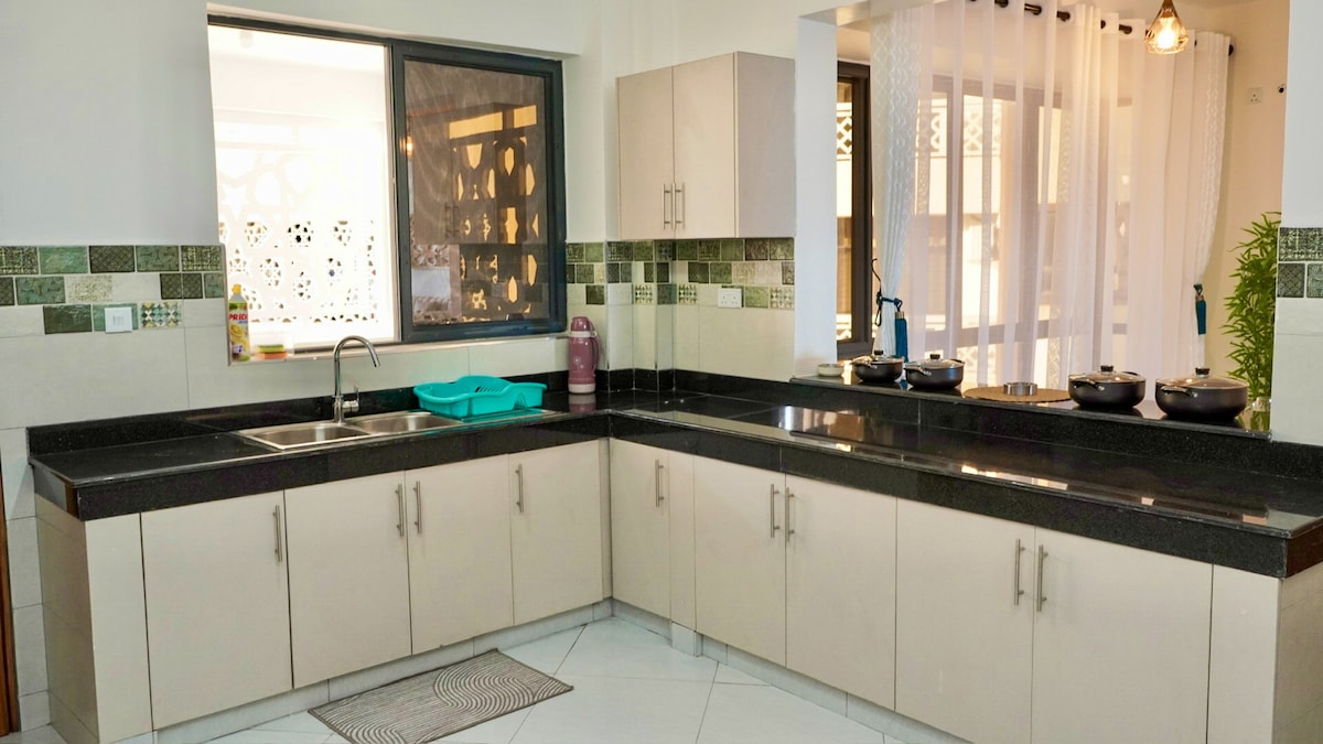 Zaboravite na brige u ovom prostranom i spokojnom prostoru. Probudite se uz zvuk talasa i pogled na očaravajući Stari grad. Uživajte u doručku na verandi s pogledom na skrovitu baštu i Tudor Creek. Obe glavne spavaće sobe su u apartmanu, a u objektu se nalazi ljubazan staratelj zajedno sa potpuno opremljenom kuhinjom sa potpuno opremljenom kuhinjom. Udaljenost od marine English Point, The Tamarind i samo 5 minuta vožnje do supermarketa Chandarana Foodplus. Vaš odmor u odmoru. Opustite se. Čeka vas.