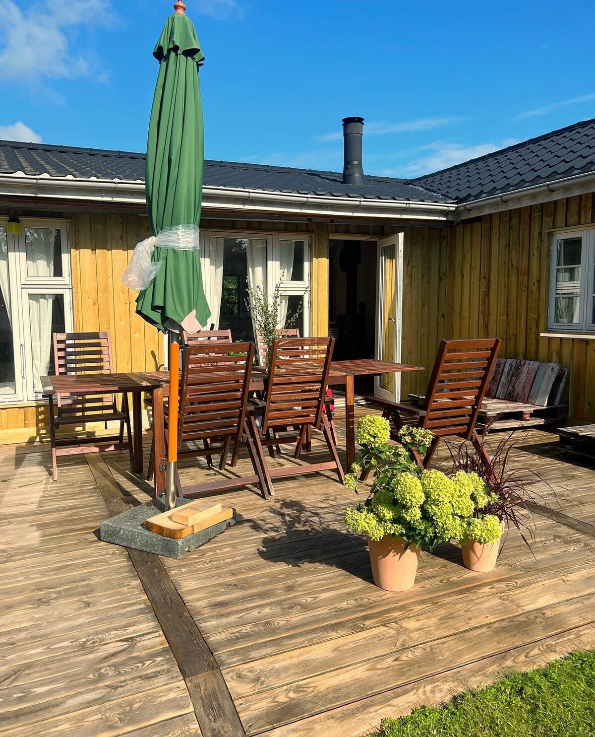 Udobna potpuno renovirana seoska kuća sa velikom drvenom terasom Malo o kući: 70 m ² sa aneksom 1 soba u aneksu sa bračnim krevetom (izolovana i grijana) 1 soba sa bračnim krevetom 1 kupatilo sa podnim grejanjem, toalet/tuš Nova kuhinja sa mašinom za sudove Dnevni boravak sa pametnim TV-om (postoji pristup Netflix-u, Viaplay-u, HBO-u, Disney-ju i DRtv-u) Internet Drvena terasa od 55 m² sa roštiljem 5 minuta do plaže Greje se na peć na drva (drva za ogrev su besplatna) i električne radijatore 10-12 minuta do Kalundborga Kuća je namještena kao na slikama