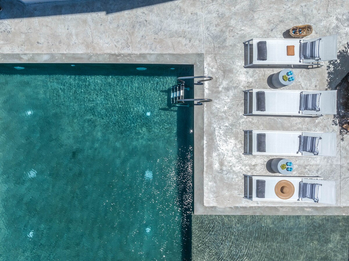 Prelijepa,tradicionalna vila udaljena 5 minuta hoda od plaže Agios Onoufrios i lokalnog restorana. Vila je renovirana u januaru 2025. godine. Postoje 3 spavaće sobe sa zasebnim kupatilima i dodatni WC pored dnevne sobe sa mašinama za pranje i sušenje veša. Spoljašnji prostor je prostran sa privatnim bazenom i manjim bazenom sa hidromasažom. U spoljašnjem prostoru se nalazi i 6 udobnih ležaljki za sunčanje sa debelim kožnim dušekom, trpezarija i roštilj na gas.