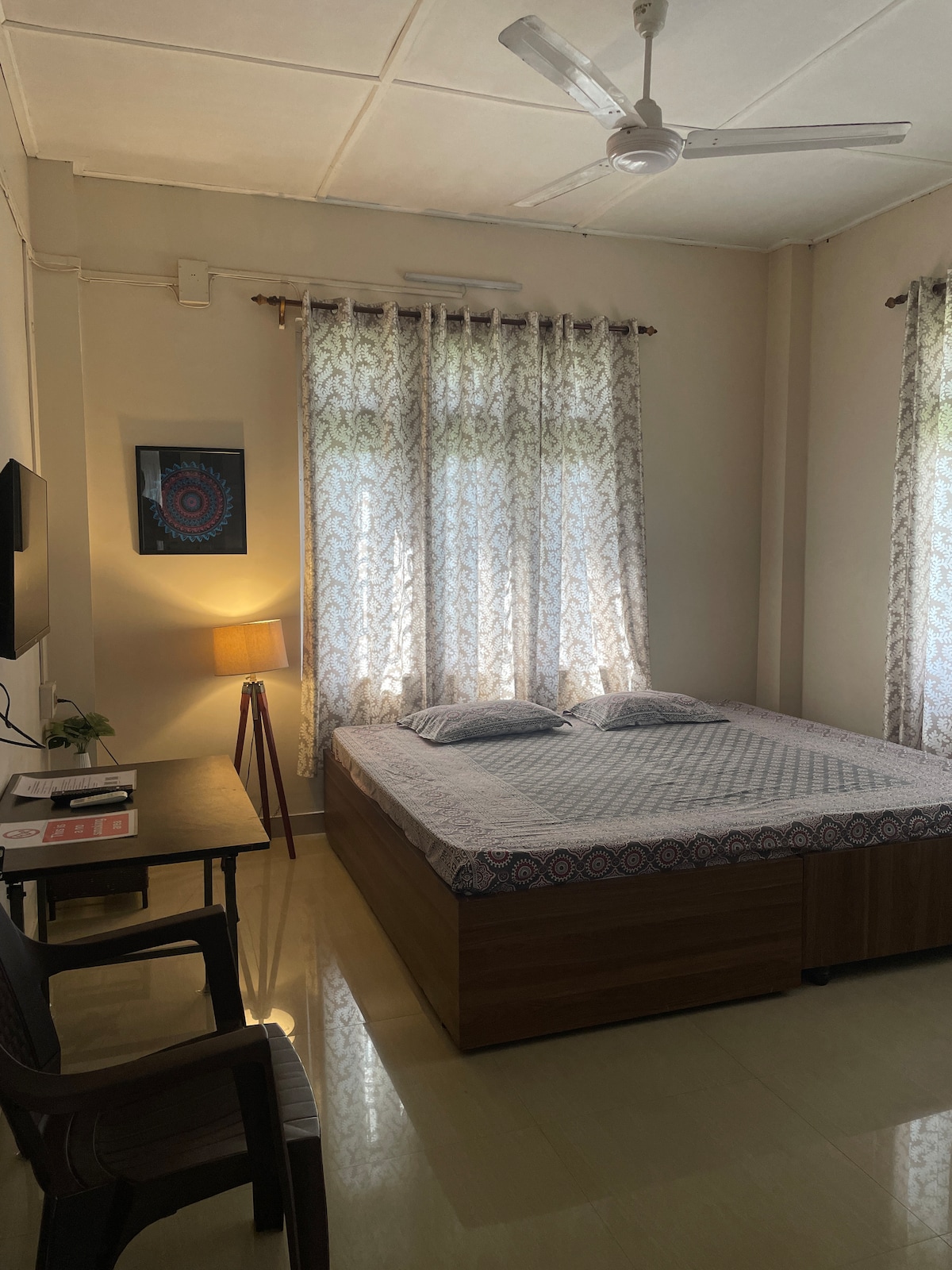 Udoban smještaj koji se nalazi u mirnom dijelu grada. • Veliki bračni krevet, klima-uređaj, pametni TV, Wi-Fi i kupatilo s geaserom. • Pušenje strogo nije dozvoljeno u spavaćoj sobi. (Zabranjene zabave) • Ovo je dio kuće 2BHK RCC koja se nalazi na 1. spratu. Dnevni boravak se dijeli sa drugim gostima. •Kuhinja je tu. (Očistite ga nakon upotrebe) • Molimo vas da sa sobom ponesete ličnu kartu s fotografijom ( Aadhar/Birač/DL itd.) Prijava : nakon 13:00, a prije 23:00 noću •Odjava: 11:00.