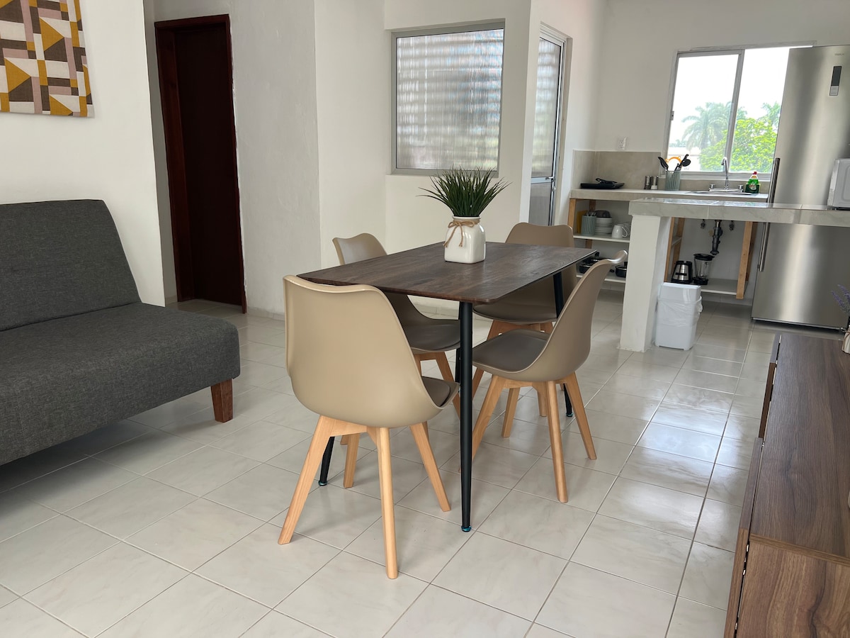 Novi stan za dvije osobe nalazi se nekoliko ulica od Paseo de Montejo de Mérida. Udoban, svetao i udoban prostor. Ima sve sadržaje koji imaju prijatan i utešan boravak: potpuno opremljenu kuhinju sa frižiderom, indukcionim šporetom, mikrotalasnom rernom i svim potrebnim priborom, peškire, toplu vodu, internet, klima-uređaj. Bračni kreveti mogu da postanu bračni kreveti i veoma su veliki i udobni.