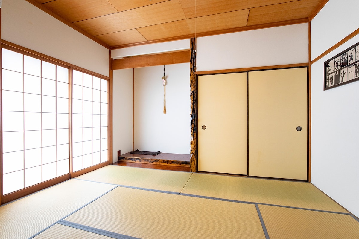 Biće to obična noć.Soba za opuštanje sa 3 polubračna kreveta.Sve što vam je potrebno za Netfrix (film).Udoban prostor s mekanim futonima i hotelskim jastucima.2-5 ljudi je u redu.U sobi se nalaze i sto i stolice za 4 osobe.Slobodno uđite i izađite.Tuš kabina i WC su zajednički izvan sobe.Održava se čistim i čistim.Besplatan parking, vešeraj, peškiri i sadržaji.Samostalno ćete se prijavljivati radnim danima od 14:00 do 21:00.Kôd za ulaz i sobu poslaćemo imejlom 1-2 dana unaprijed.Osoblje će ući na recepciju nakon 21.00.Knjiga smještaja i plaćanje (za lokalno plaćanje) su dostupni nakon 21:00. Hvala vam puno.