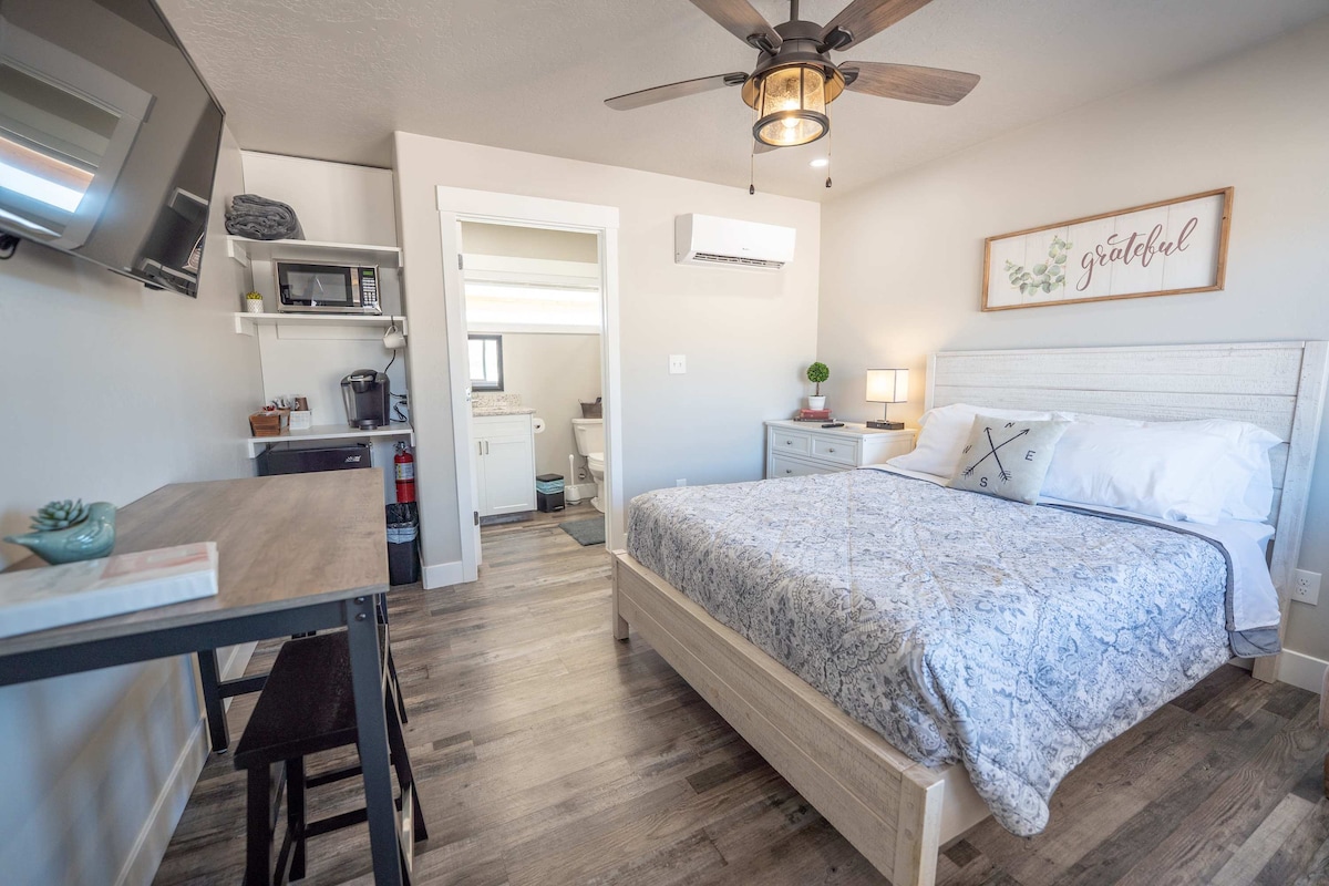 Pobegnite u naš spokojni studio Red Rok u Kanabu u Juti, na samo nekoliko minuta od Zajona, Brajsa, Nacionalnog parka Grand Stejrkis-Eskalante i severnog dela Velikog kanjona. Savršeno za parove i samostalne avanturiste, uživajte u privatnom ulazu, brzom Wi‑Fi-ju, namenskom radnom prostoru, klima-uređaju/grejanju i zadivljujućem pogledu na izlazak/zalazak sunca sa natkrivenog trema. Opustite se na seoskom vazduhu uz jednostavan pristup pješačkim stazama, uskim kanjonima, lokalnim restoranima i slikovitim sporednim putevima. Vaš bazni kamp za avanturu vas čeka!