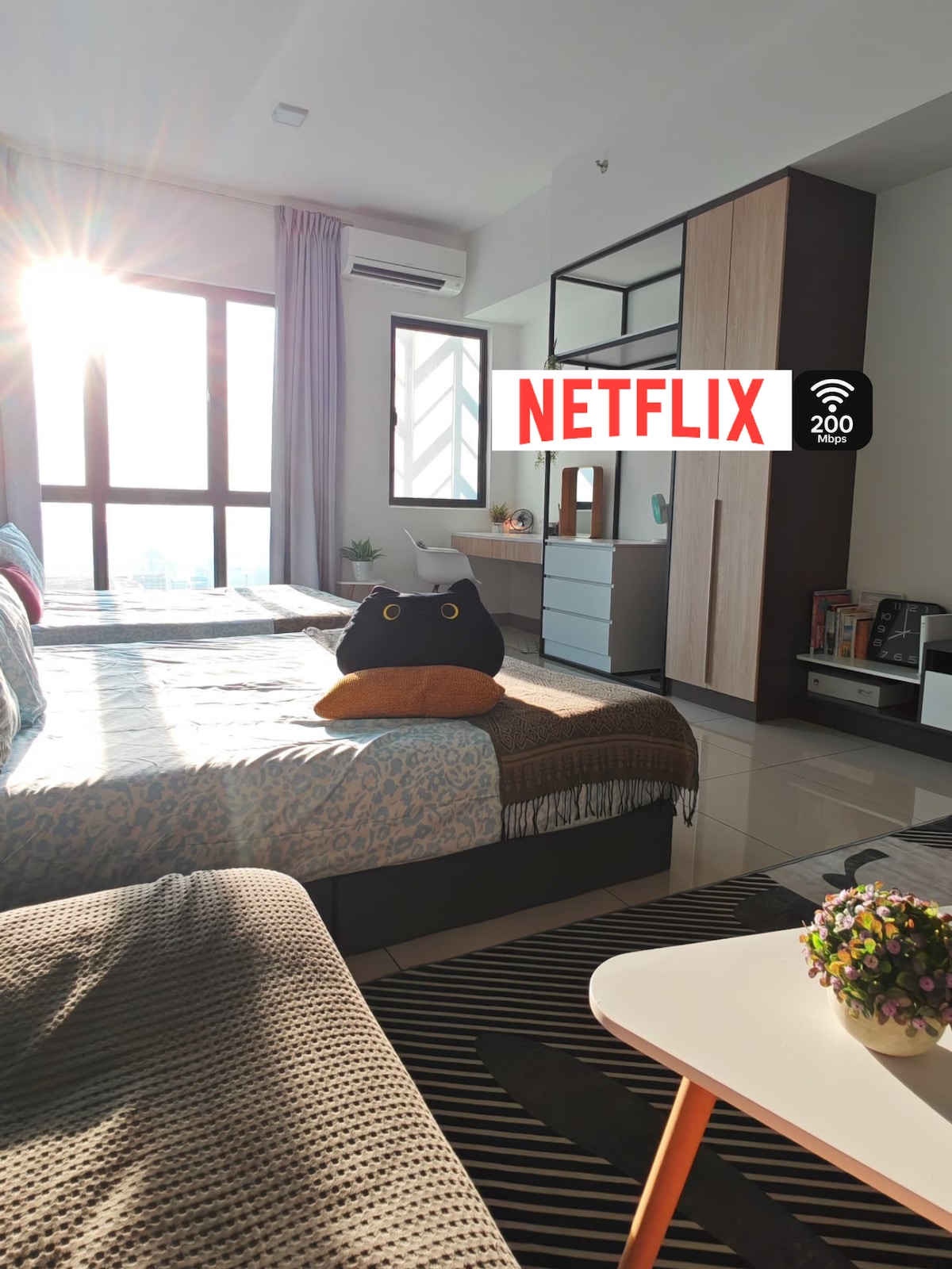 Dobro došli u moj novi dom u Alinea Suites, Seksyen 14, Shah Alam! Ovaj prvoklasni SOHO odlikuje se modernim, elegantnim dizajnom i beskonačnim bazenom. Zakoračite u udoban, pažljivo uređen apartman s toplim osvjetljenjem, živim biljkama i plišanim namještajem. Uživajte u vrhunskim sadržajima kao što su UHD TV od 58 inča sa PS5, Netflix i Disney+, potpuno opremljena kuhinja, tuš kabina, mašina za pranje/sušenje veša, internet od 200 Mbps i besplatan parking! Savršeno za opuštanje ili rad, ovo je vaše mirno urbano utočište.