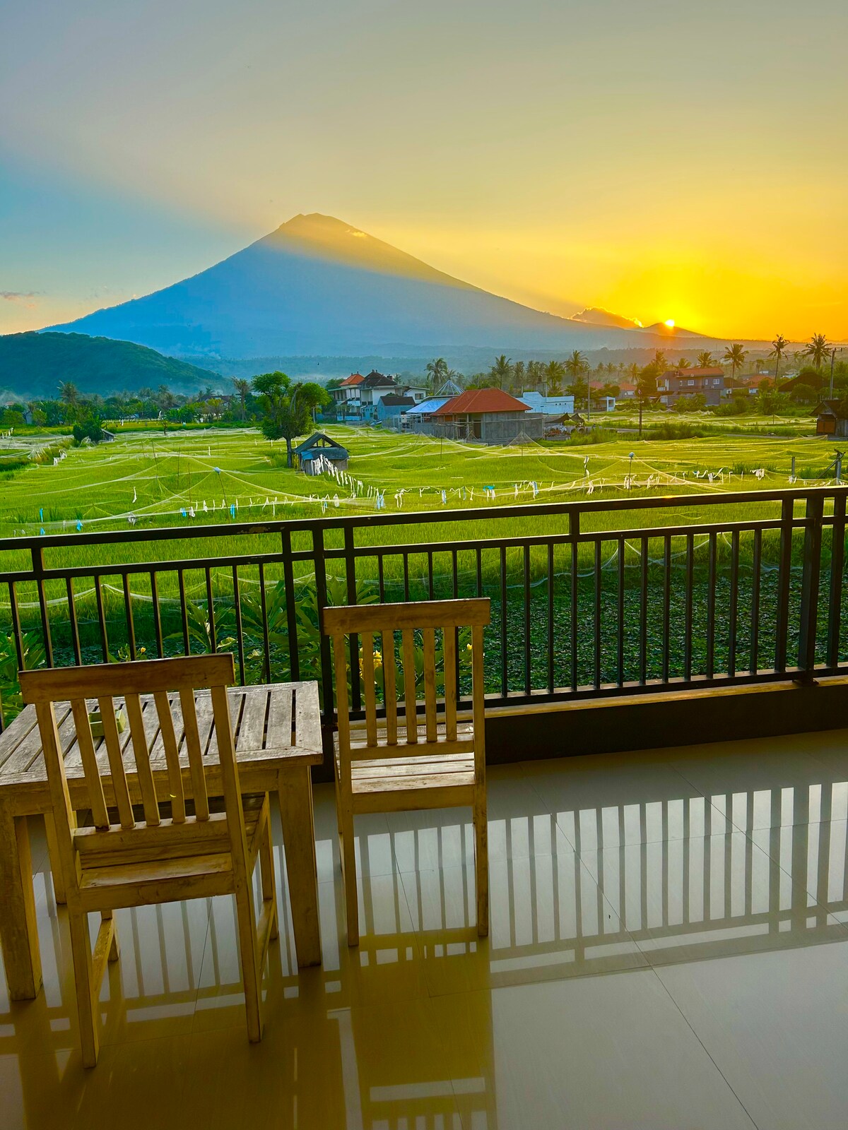 Još uvek imamo građevinske radove do 16. aprila Malo je bučno od 8:30 do 16:30 D 'ram homestay best stunning vulcano view/sunset point location 3 minutes walk to the beach, restaurant/supermarket. 2 private huge room space king size bed with surrounding rice fields and Mount Agung just in front of your balcony and bedroom Soba je uključena Doručak Wi-Fi Klima-uređaj Topli tuš Frižider Toaletne potrepštine Besplatna voda Kafa i čaj