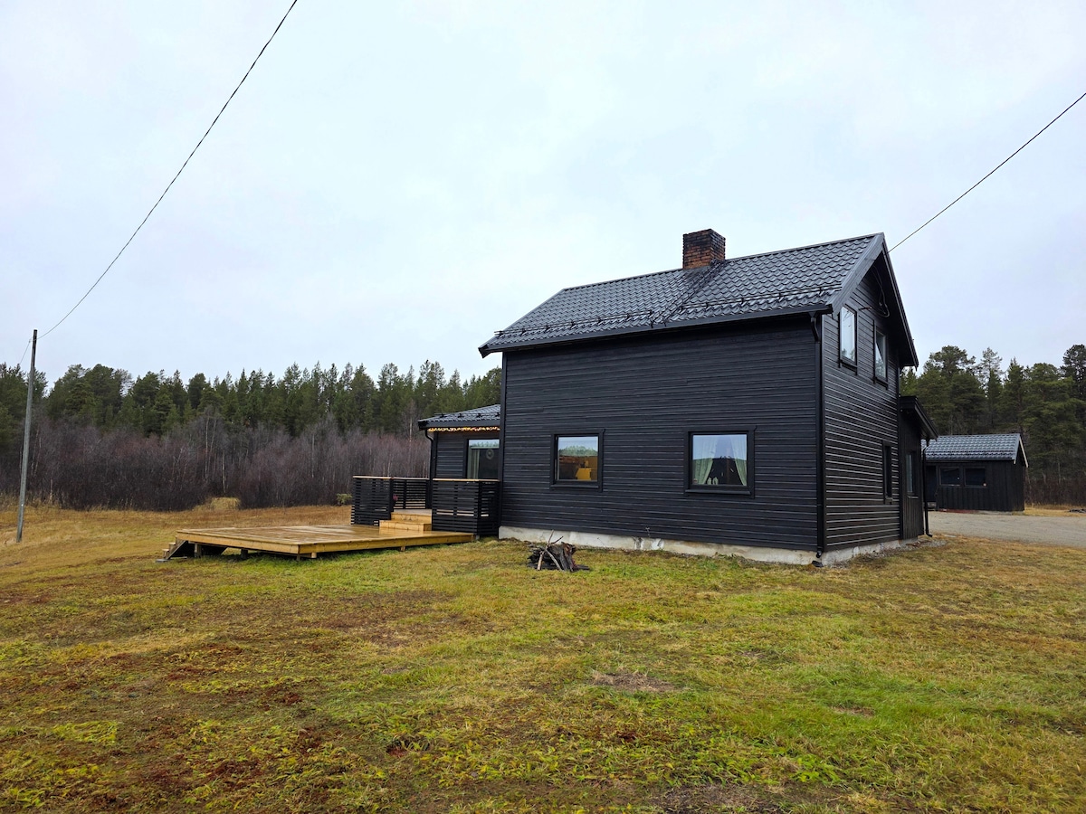 Mali udoban stan sa 2 spavaće sobe i najviše 5 kreveta u slikovitom okruženju. ✨ U blizini jedne od najboljih rijeka lososa (samo 300 metara) 🎣 Lijepi planinarski i biciklistički putevi u neposrednoj blizini 🚵🚲🥾 U blizini dobrih ribolovnih voda. Samo 6 km do centra grada 🛒 Ne kroz saobraćaj u objektu 🛻 Prilike da po želji rezervišete vođene obilaske motornim sankama, terenskim vozilom ili sankanjem sa psima. (Ako želite, morate ranije da pošaljete zahtjev za ugošćavanje) Dobri uslovi za doživljaj polarne svjetlosti ili ponoćnog sunca ☀️🌞
