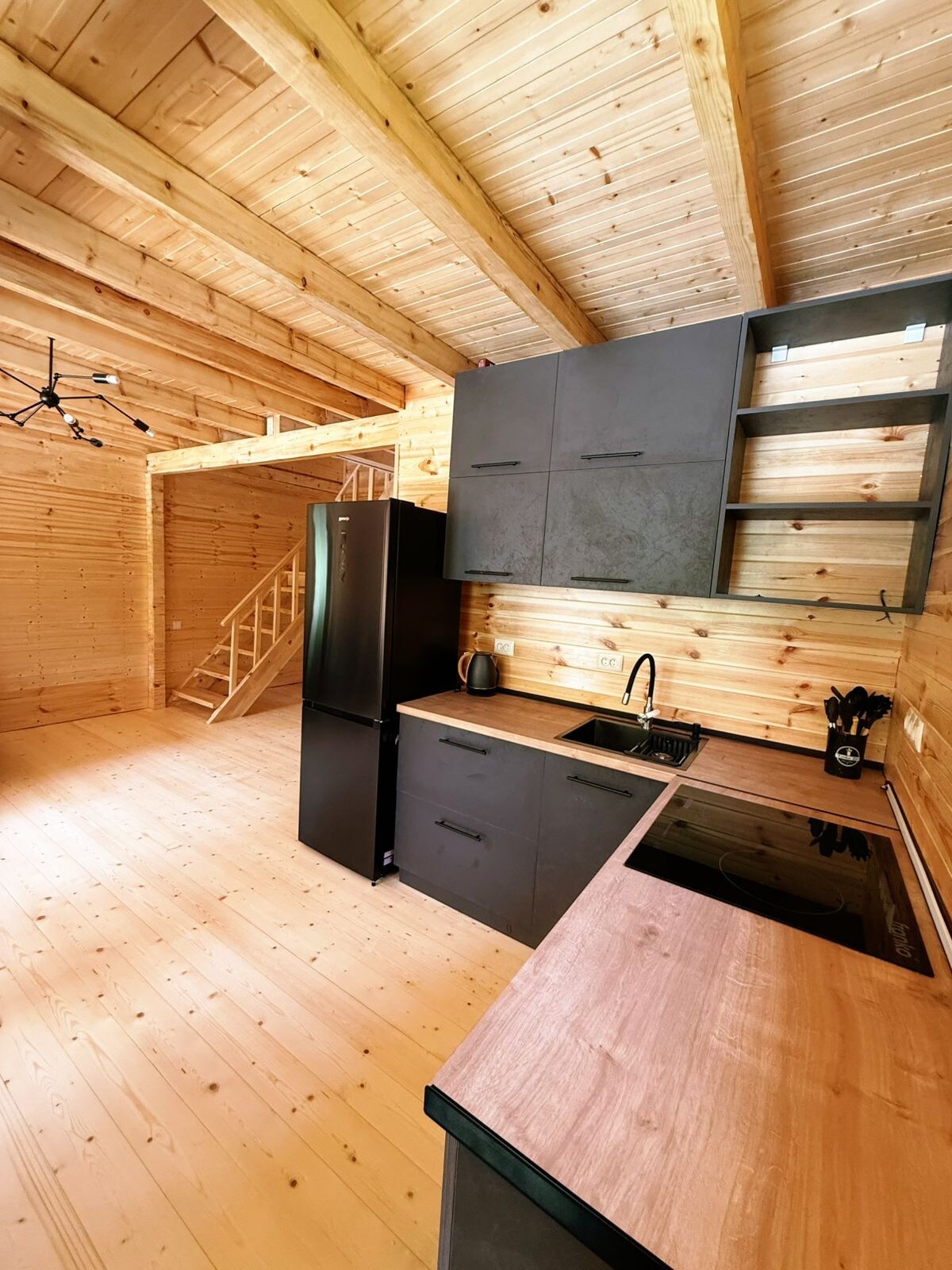 Ova dvospratna drvena seoska kuća nalazi se u planinama, smještena u osamljenoj borovoj šumi u kojoj vladaju mir i tišina. Veliki panoramski prozori pružaju zadivljujući pogled na okolnu prirodu i visoka stabla. Samo jedan kilometar od kuće, živopisna staza vodi do prelijepog vodopada. Kristalno čista planinska rijeka protiče 300 metara — savršena za opuštanje, ribolov i piknike. Ovdje možete u potpunosti da uronite u prirodu, uživate u svežem vazduhu i istinskom osami.