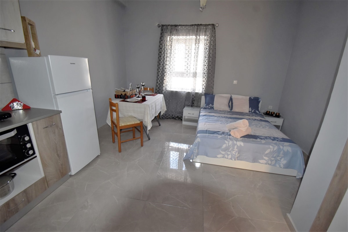 Potpuno renoviran studio sa starinskim raspoloženjem, u centru Pigadije, dva minuta hoda od supermarketa, banaka, restorana i barova, taksija i autobuske stanice. Opremljena čajna kuhinja, TV, internet i klima uređaj. Na 3. spratu (bez lifta), ali sa prostranim balkonom i predivnim pogledom. Obavještavamo naše goste da naknada za održivost od ove godine iznosi 8 evra dnevno i da se mora platiti gotovinom po vašem dolasku.