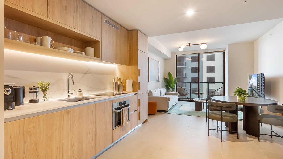Novi kondominijum, unutar modernog hotelskog tornja, uživajte u sadržajima sličnim hotelu: bazenu, đakuziju, (14. sprat), teretani, teretani, restoran, kafić, bar, parking uz naknadu. Jednosoban stan, kupatilo, kuhinja, dnevni boravak i trpezarija, TV, Wi-Fi, mašina za pranje veša, sušilica. U blizini su živahne četvrti Majamija: Brikel, Kokos Grouv, Dizajnerski okrug, Vinvud, Majami/Saut Bič. Najbolja lokacija, tržni centri: Bayside, Brickell Centre, Venues: Bayfront, FTX, Arsht Center, Muzeji: Frost