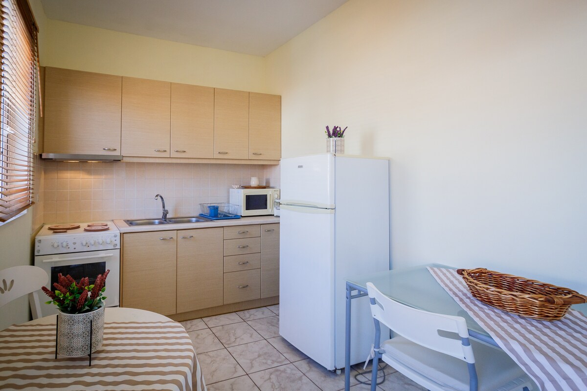 Studio „Sky Blue Horizon“ sa potpuno novom modernom kuhinjom koja se sastoji od rerne i ploče za kuvanje, mašine za pranje veša i velikog frižidera. Sa privatnog balkona imate veličanstven pogled na more „Ionion“, od spoljašnje bašte nalaze se stepenice koje vode do male privatne plaže. Akrotiri je mirna lokacija, u blizini Tsilivija. Ovaj objekat ispred plaže nudi pristup terasi, besplatnom privatnom parkingu i besplatnom Wi-Fi mreži. Vlasnik vas srdačno dočekuje i želi vam prijatan odmor.