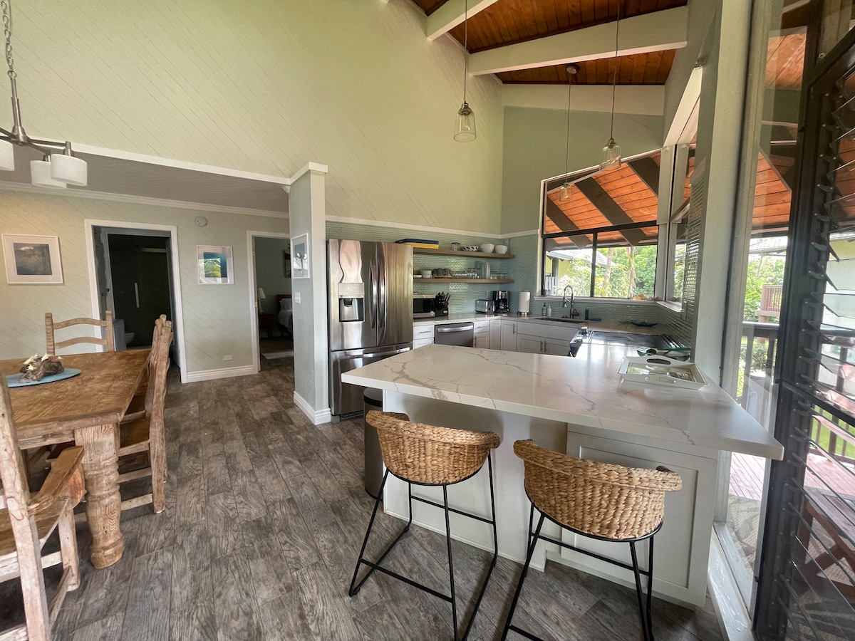 Tri spavaće sobe (1 kralj, 1 kraljica, 1 bračni krevet), sve u prizemlju, i 2 kupatila u srcu grada Kilauea. (Na spratu se nalazi četvrtu spavaću sobu sa bračnim krevetom i slobodno ga koristite. Ne računam ga kao spavaću sobu, jer se radi o spavaćoj sobi u potkrovlju, otvorena s jedne strane.) Vozite do bijelih pješčanih plaža za nekoliko minuta ili prošetajte do restorana, pekare i kupovine. Ruralna ljepota na slikovitoj sjevernoj obali.