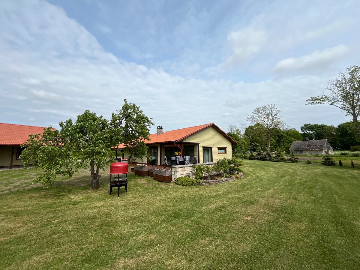 Udobna, prostrana i svijetla drvena kuća je zaista privatna i savršena za ljubitelje prirode. Nalazi se u nacionalnom parku Vilsandi, a veliki prozori kuće omogućavaju vam da uživate u prirodi čak i sa sofe. U kući se nalazi sve što vam je potrebno za bezbrižan odmor (kuhinja sa svom opremom i mašinom za pranje sudova, mašina za pranje veša, pegla itd.). Sauna na drva, kamin i hidromasažna kada (uz dodatnu naknadu). Na raspolaganju su vam dva bicikla.