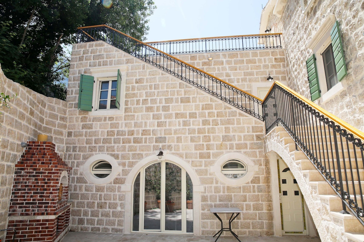 Ova stara kamena kuća uz obalu prvobitno je izgrađena u 19. veku i potpuno renovirana 2018. godine. Unutrašnjost predstavlja mešavinu tradicionalnog mediteranskog stila u kombinaciji sa modernim dizajnom. Smještena u mirnom starom ribarskom selu po imenu Muo, naša kuća je savršena baza za istraživanje zaliva. Stari grad Kotor je udaljen manje od 10 minuta vožnje, dok je aerodrom Tivat udaljen manje od 20 minuta. Kuća ima tri sprata i svaki sprat ima nesmetan pogled na more.