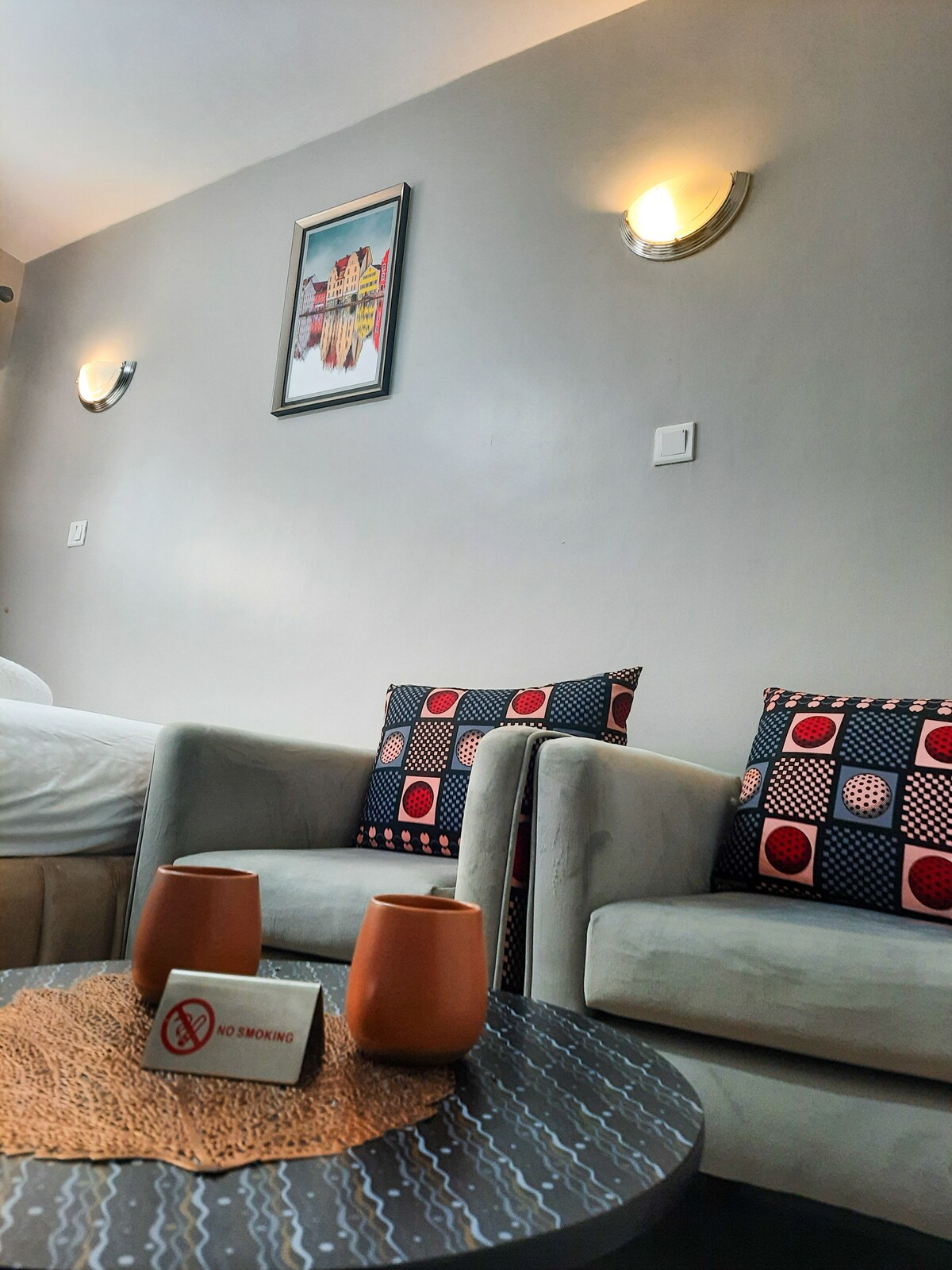 Unwind in this Iconic space that has been furnished with bespoke fittings and furniture throughout designed to help rejuvenate, restore, and recharge your energy as you decompress on holiday or after a day at work. The Executive suite is located centrally in Nairobi, 30 mins from the airport and has a mall at its door step across the road. There's WiFi, a heated swimming pool, Fully equipped kitchen, Gym, free parking plus more, all inside the gated, secure 24hr security guarded Complex.