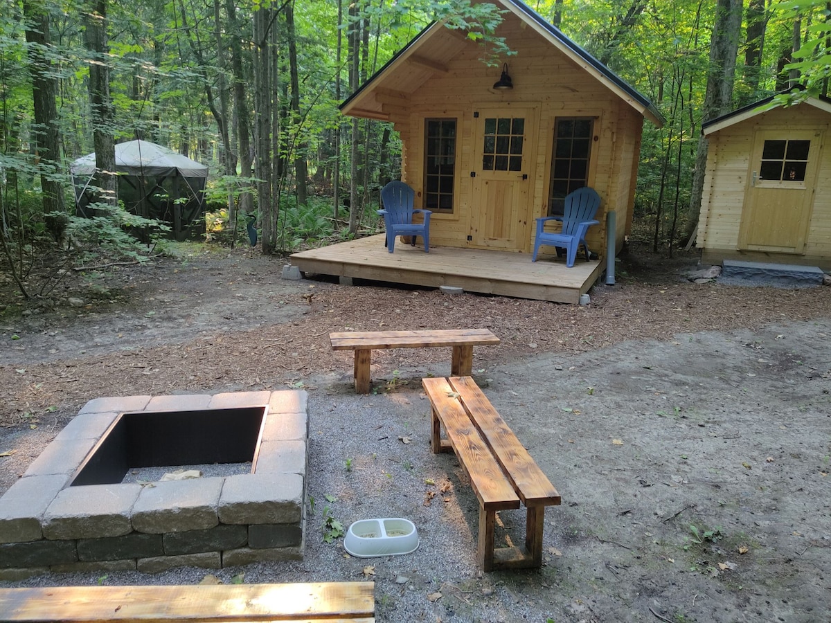 Isključite, opustite se + ponovo povežite sa prirodom na nezaboravnom odmoru. Ova svijetla, čista četverogodišnja, minijaturna brvnara opremljena je svime što vam je potrebno za samostalni odmor ili romantični odmor; samo dodajte glamping opremu! Smješten privatno u šumi, na potoku, a ipak samo nekoliko stotina stopa od glavne kuće, ovo je glamping u najboljem svjetlu. Kuvajte na roštilju ili otvorenoj vatri, zaronite u potok, okupajte se u šumi, čitajte, odmorite. Minovi iz Bobkajuga, ATV + staze za sanjkanje. Jedva čekamo da vas ugostimo!
