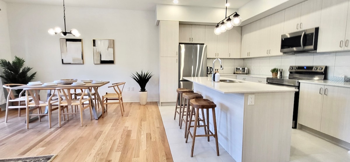 Doživite naš izuzetan Airbnb! Uronite u mir u blizini atrakcija. - Luksuzno u našoj sauni eukaliptusa, utočište opuštanja. - Uživajte u potpuno opremljenoj kuhinji, udobnom kaminu i elegantnom namještaju. - Zabavite se uz TV, društvene igre i roštilj na otvorenom. - Budite udobni sa osnovnom opremom, radnim prostorom, mašinom za pranje veša i mašinom za sušenje veša. - Istražite prirodu sa pristupom plaži, privatnim ulazom i ognjištem. - Uživajte u besplatnom parkingu i Teslinom punjaču za električna vozila Rezervišite sada za nezaboravan boravak u Muskokasu.