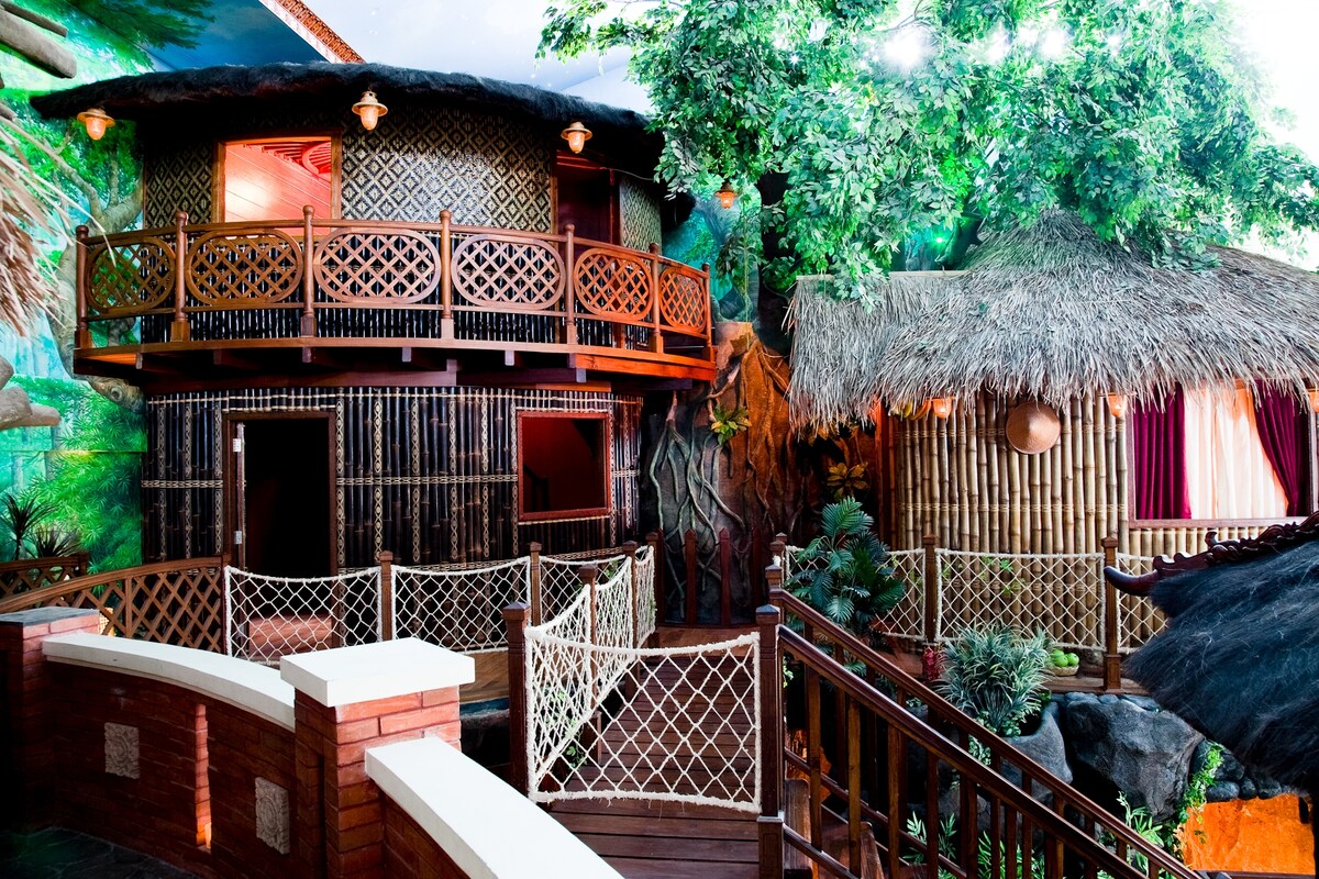 Ogromna kuća sa konceptom seoske atmosfere unutar kuće, koja se sastoji od drveća, soba, jezera i bale i jedinstveno dizajniranog tradicionalnog indonezijskog stila.