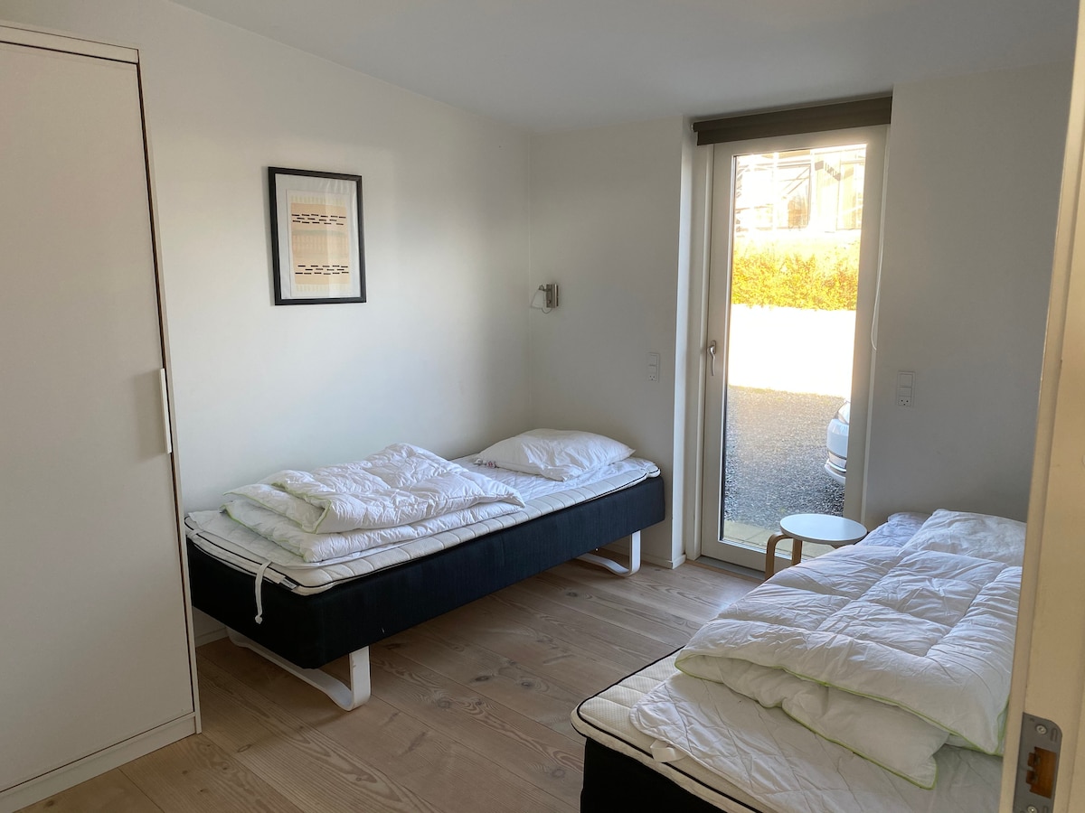 Newly built apartment, 50 m2. Includes 2 double rooms, small kitchen with fridge, coffee maker, mini oven, a single electric hob etc. Living room with sofa, dining area and bath/toilet. Private entrance, parking right by the door. Peacefully and idyllically located by Skamlingsbanken, 10 min. drive south of Kolding and E45. Lots of opportunities to enjoy nature in the area, large path system with beautiful views. Close to the child-friendly Binderup beach.