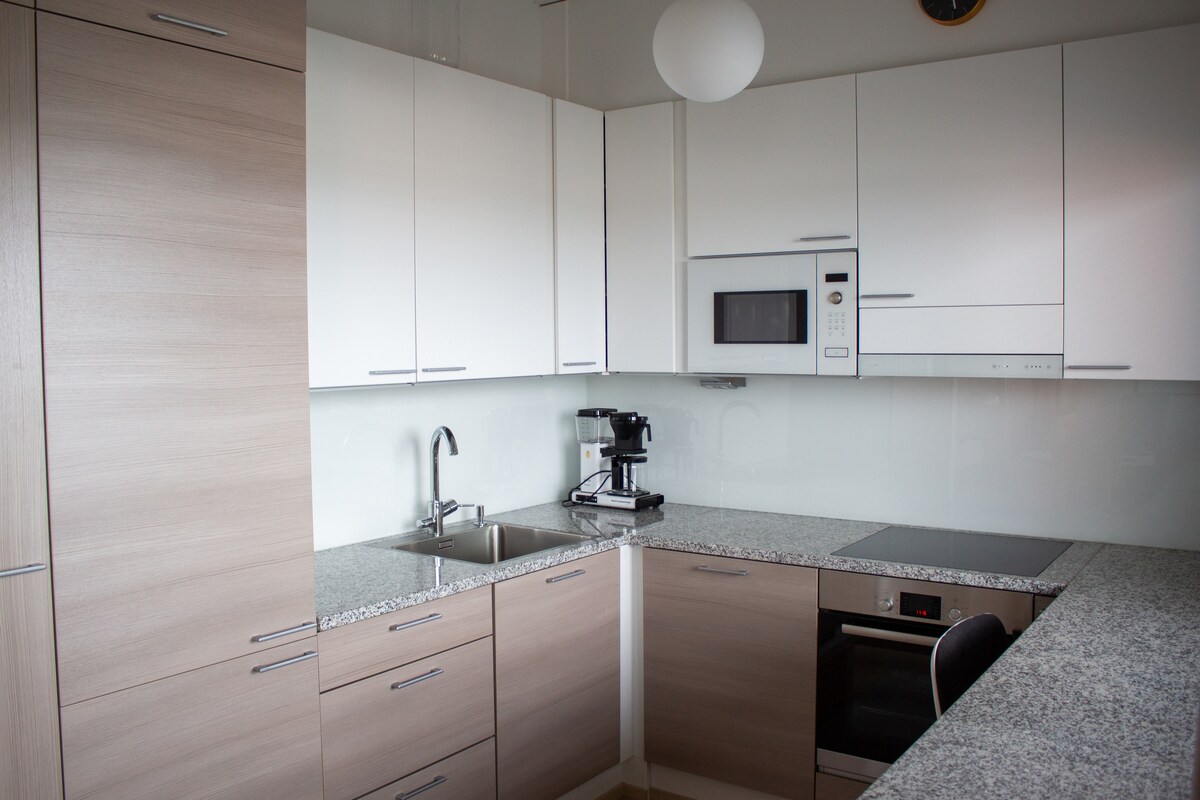 Za vas je ovdje jedinstven, klimatizovan, lijepo namješten dvosoban stan na najvišem spratu sa saunom, na fantastičnoj lokaciji u blizini centra Oulua. PUNJENJE ELEKTRIČNOG AUTOMOBILA 10 € dnevno. Jedinstvena krovna terasa, šira od stana, okrenuta prema jugu, je san svih ljubitelja sunca. Veliki prozori i velika klizna vrata na balkonu daju udoban osjećaj prostora. Moderan apartman sa klima-uređajem može da primi 1–5 odraslih osoba u centru Oulua. Sve usluge su dostupne pešice. Besplatan parking. Odlične aktivnosti na otvorenom. PUNJENJE ELEKTRIČNIH VOZILA