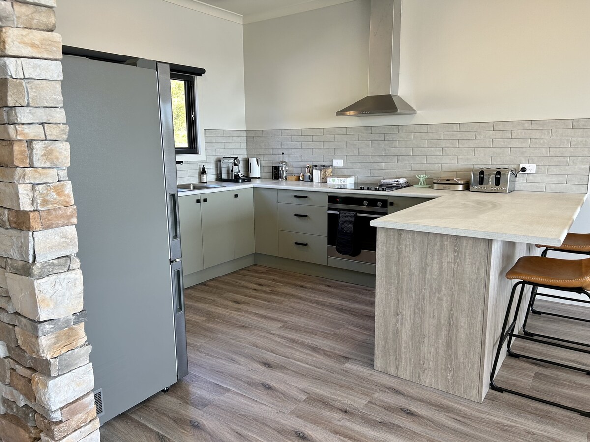 Butik stan, drveni podovi, grejalica na drva, Smart TV, neograničen NBN Wi-Fi, kuhinja sa rernom, šporetom, frižiderom, mikrotalasnom rernom, aparatom za kafu, loncem za sporo kuvanje itd. Bračni krevet (širine 180-220 cm) u spavaćoj sobi, sofa u dnevnom boravku. Moderno kupatilo sa podno grejanje, samostojeća kada + tuš. Spektakularni pogledi na imovinu brda i planinskih lanaca sa dve strane. Paluba, prekrasni vrtovi, prostor za sjedenje i bbqs na 6 hektara. Ljubazne životinje. Uživajte u miru i tišini našeg Hideawaya