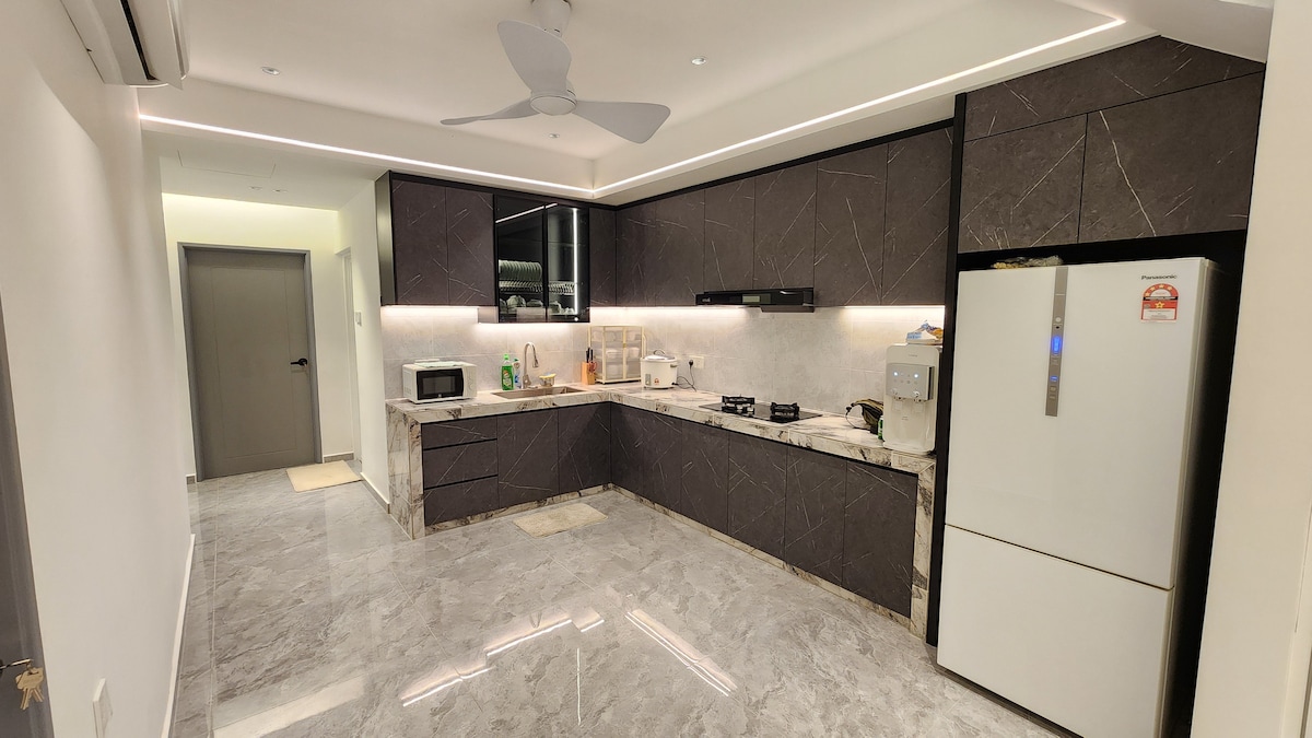 Dobro došli u moju predivno elegantnu i predivnu kuću s kopnom! Idealan smještaj za sve koji putuju u Batervort u Penangu i traže centralnu lokaciju. Četvrt udaljena samo nekoliko minuta vožnje od prodavnica i restorana, što ga čini odličnim centrom za vaša putovanja. To je savršen odmor za male grupe, porodicu, prijatelje ili čak dugoročno iznajmljivanje. Jedva čekamo da vam poželimo dobrodošlicu!