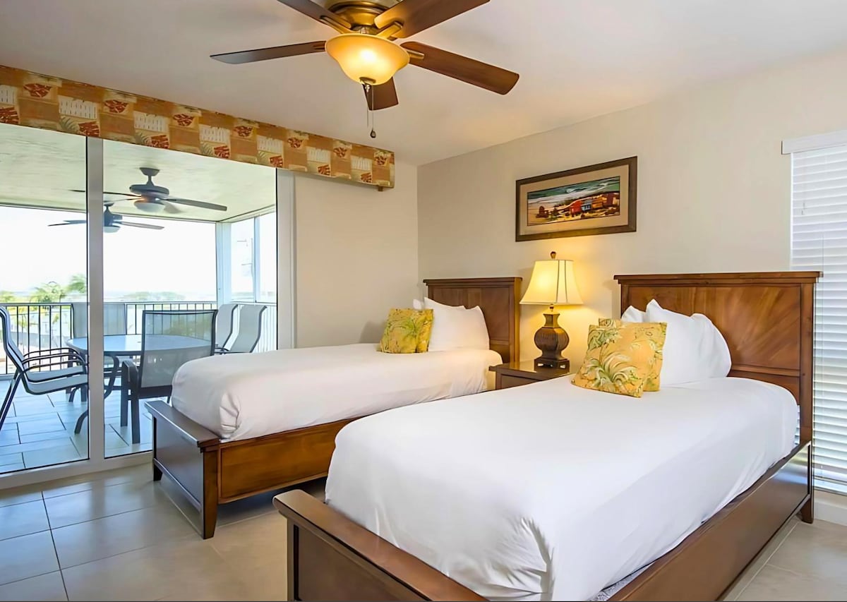 Enjoy stunning ocean views from your private balcony in this spacious guestroom, featuring two queen beds and a deluxe bathroom with separate shower and bathtub. Located on the second or third floors, these rooms also offer a comfortable outdoor living area and desk space. Thoughtful amenities like air conditioning and pet-friendly options ensure a relaxing, memorable stay.