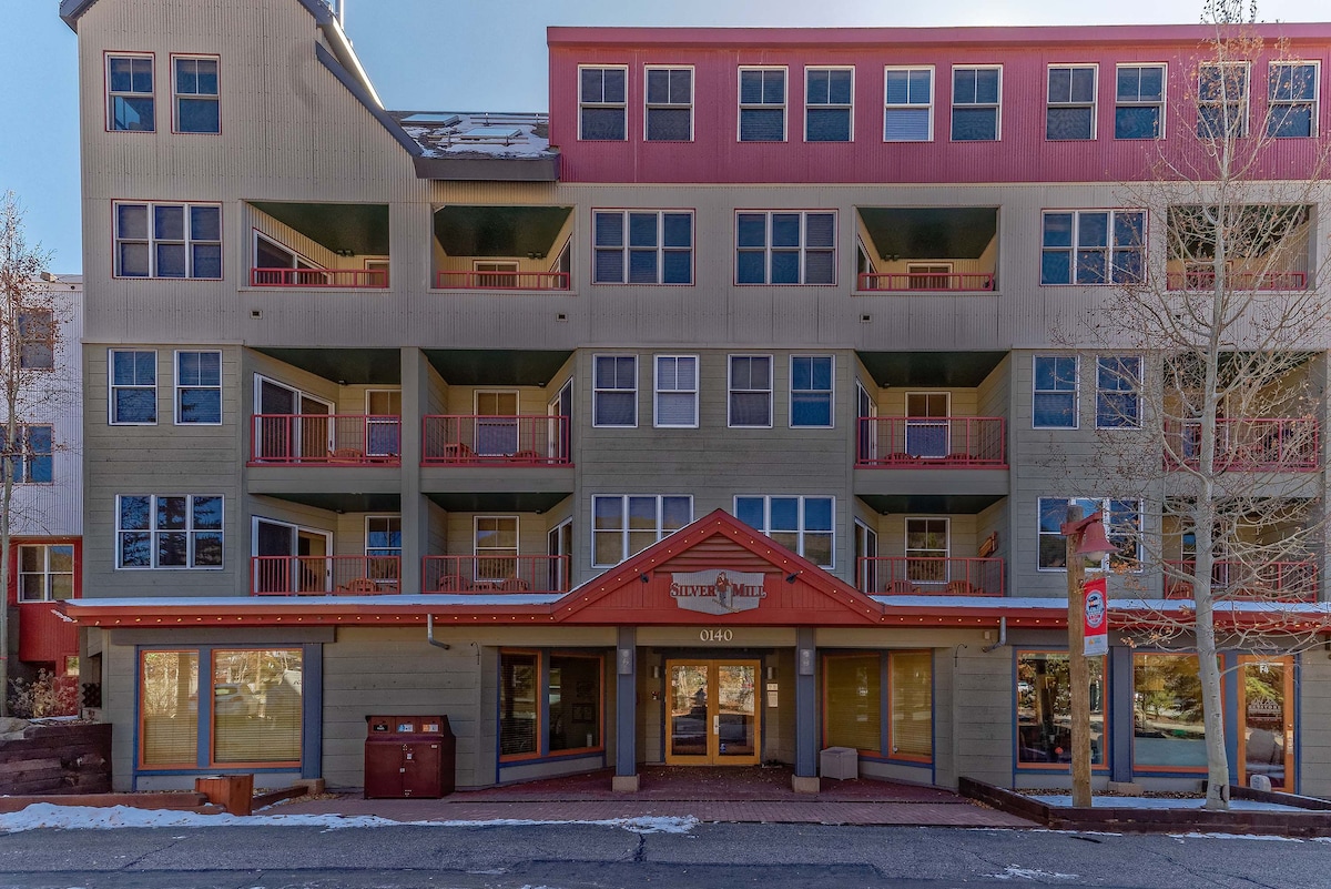 Nevjerovatan stan u krugu od koraka do liftova! Silvermill Condo u Keystone River-Run Villageu. Udobno, udobno, sa prelepo ažuriranim osvetljenjem i dizajnom. Grijani parking u garaži (maks. 1 automobil). Koraci do skijaških staza/biciklizma/hrane na svežem planinskom vazduhu. Spava 4 osobe sa glavnim bračnim krevetom i dnevnim boravkom sa kaučem na razvlačenje. Nema klima-uređaja/klima-uređaja. Probudite se uz pogled na planine. 5 minuta vožnje do jezera Dilon. 10 do 45 minuta od Breckenridge, Copper Mountain, A-Basin, Loveland, Vail, Beaver Creek.