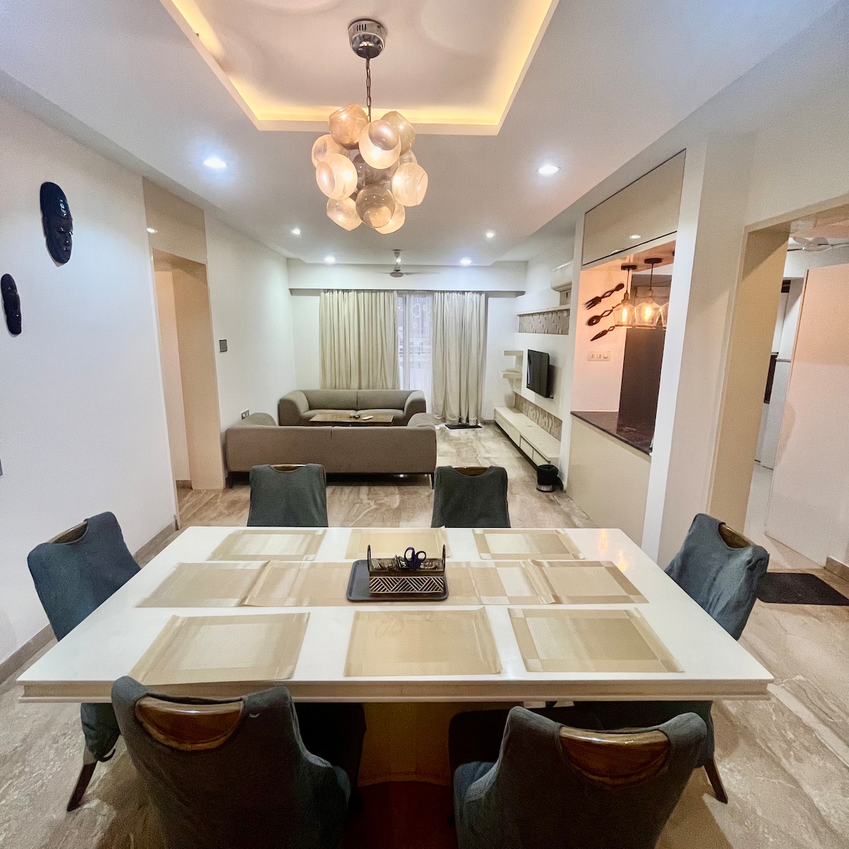 Elegantan smještaj na najvišem spratu | 2 min hoda do aerodroma Pune Uživajte u mirnom i luksuznom doživljaju u ovom lijepo uređenom stanu sa zadivljujućim enterijerom, pogledom na balkon, bazenom na krovu, teretanom i još mnogo toga. Savršeno za parove i putnike. Rijetki dragulj udaljen samo 300 metara od aerodroma Pune! Opustite se u elegantnom, dobro opremljenom stanu samo 2 minuta od aerodroma Pune. Uživajte u bračnom krevetu, pametnom TV-u od 55inča sa Google asistentom i brzom Wi-Fi mreži.