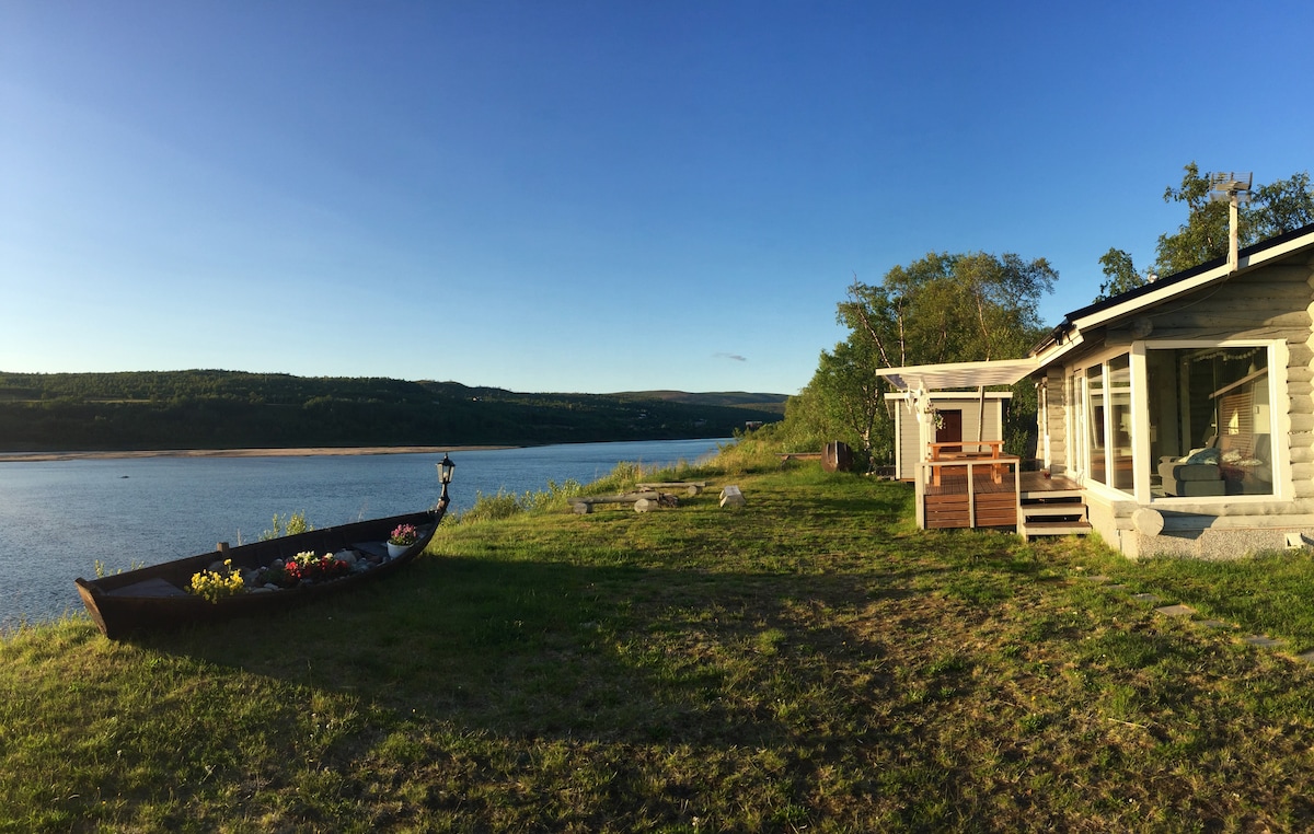 Upea hirsihuvila Inarijärven rannalla
