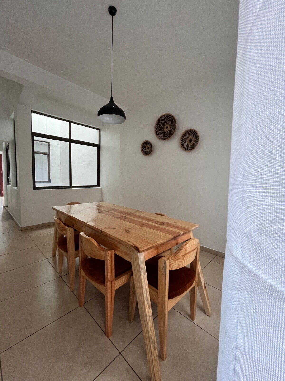 Welcome to Kona Gana, a newly constructed, modern apartment located in the heart of Kigali. A spacious 2 Bed 2 Bath duplex apartment perfect for couples, a group of friends, business travellers or a family with children. The apartment is located in the safe, central neighbourhood of Kacyiru, and designed to offer comfort and peace of mind to travellers — fit with modern appliances, high-speed internet, a washer and dryer, universal power outlets, and comfy mattresses for a good night’s rest.