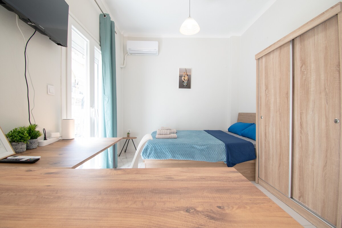 Elegantan stan prikladan za kućne ljubimce, 100 m od metroa. Savršeno za digitalne nomade, parove i male porodice koje istražuju Solun. 🛏 Svijetla spavaća soba + sofa na razvlačenje (za 2 osobe) 💻 Windows računar, Wi-Fi od 1000 Mb/s 📺 TV od 55 inča · Netflix, HBO Max, Disney+, Apple TV+, Prime – sve je unapred prijavljeno 🍳 Kompletno opremljena kuhinja + aparat za espreso 🚗 Dostupan je privatni parking (uz malu naknadu) 🐾 Kućni ljubimci su dobrodošli · Krevetac na zahtev Samostalna prijava · Lift · Klima-uređaj · 1 min do metroa