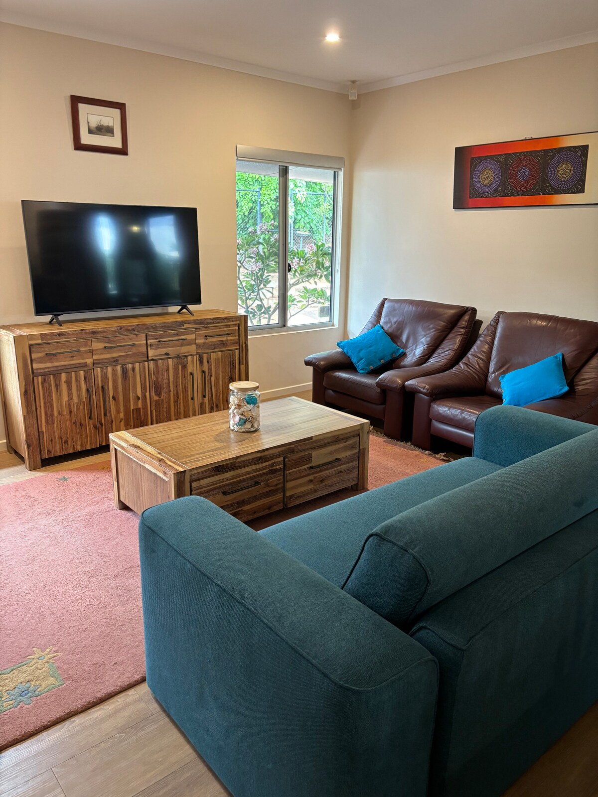 The Pearlers Bungalow is located on the front of my property which is an old Pearling Masters Residence set on a very large block with beautiful gardens. Upravo je završila veliko renoviranje i veoma je udobna Na prednjoj strani je veranda sa apartmanom sa trskom, dnevnim krevetom i trpezarijskim stolom na otvorenom. Ima zaseban salon i potpuno opremljenu kuhinju. Kupatilo je u glavnoj spavaćoj sobi i ima mašinu za pranje veša. Pored bungalova iza zaključanih kapija nalazi se privatni parking.