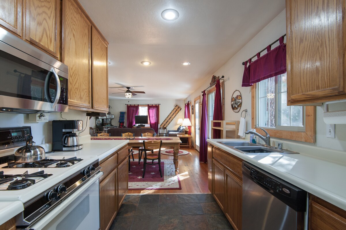 Pobjegnite u našu brvnaru za zanatlije - gdje se planinski šarm susreće sa modernom udobnošću. Samo šest blokova od jezera, savršeno za najviše 4 gosta: udobno se smjestite pored plinskog kamina, kuvajte u potpuno opremljenoj kuhinji i opustite se u samostojećoj kadi ili infracrvenoj sauni. Dva namenska stola olakšavaju rad na daljinu. Izađite na šumovite staze s pogledom na potok i jezero; prošetajte do plaže i lokalnih restorana i stignite do vrhunskih skijališta udaljenih ~15 minuta. Idealna baza za miran i nezaboravan boravak.