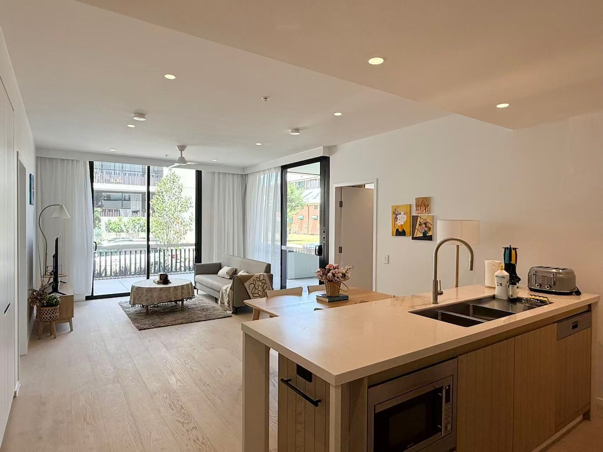 Uživajte u modernom, udobnom životu u ovom prelepom dvosobnom stanu na Anzak Parade, Kensington. Savršen za porodice, grupe ili poslovne putnike, smještaj ima dvije spavaće sobe sa bračnim krevetom (širine 150–179 cm) i kauč na razvlačenje. Jedna spavaća soba ima poseban radni sto, dok glavna spavaća soba i dnevni boravak imaju TV. Opustite se uz knjige i igre u dnevnom boravku ispunjenom svjetlošću. Idealno smješten u blizini UNSW-a, kafića, prevoza, plaža i CBD-a, ovo je elegantna baza za vaš boravak u Sidneju.