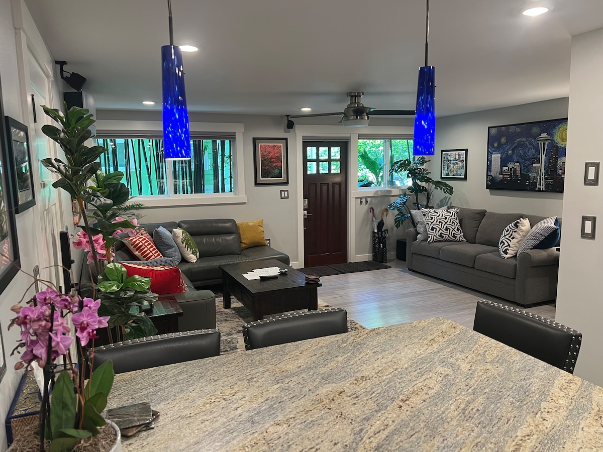 Experience Seattle oasis living in our in-city, Wallingford neighborhood, newly renovated (completed in Aug. 2017), Mid-century modern, 750 SF, entire ground level Guest Suite. You are 3.5 miles from Amazon & Downtown Seattle & 1.2 miles from the University of Washington (main campus). We have designed the suite with Airbnb guests in mind from Air Conditioning and parking space (both are rare in Seattle), soundproofing/double pane windows, to our super easy private keypad suite access.