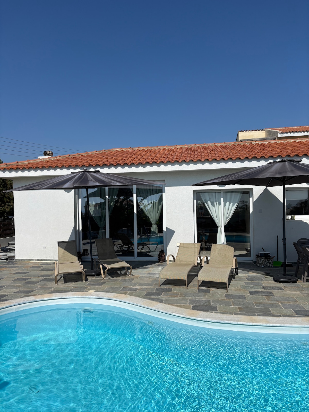 Privatni bungalov sa tri spavaće sobe u Pafosu – savršeno mjesto za ljetni odmor ili miran jesenji odmor! Uživajte u privatnom bazenu i jedinstvenim zalascima sunca!!! Samo 5 minuta od najboljih plaža u Pafosu. U blizini se nalaze taverne, supermarketi i zabavni sadržaji. Privatan parking Okruženje pogodno za porodice. Idealno za radnike na daljinu, besplatan Wi-Fi Romantični smještaj prikladan za porodice. Događaji i zabave su zabranjeni.