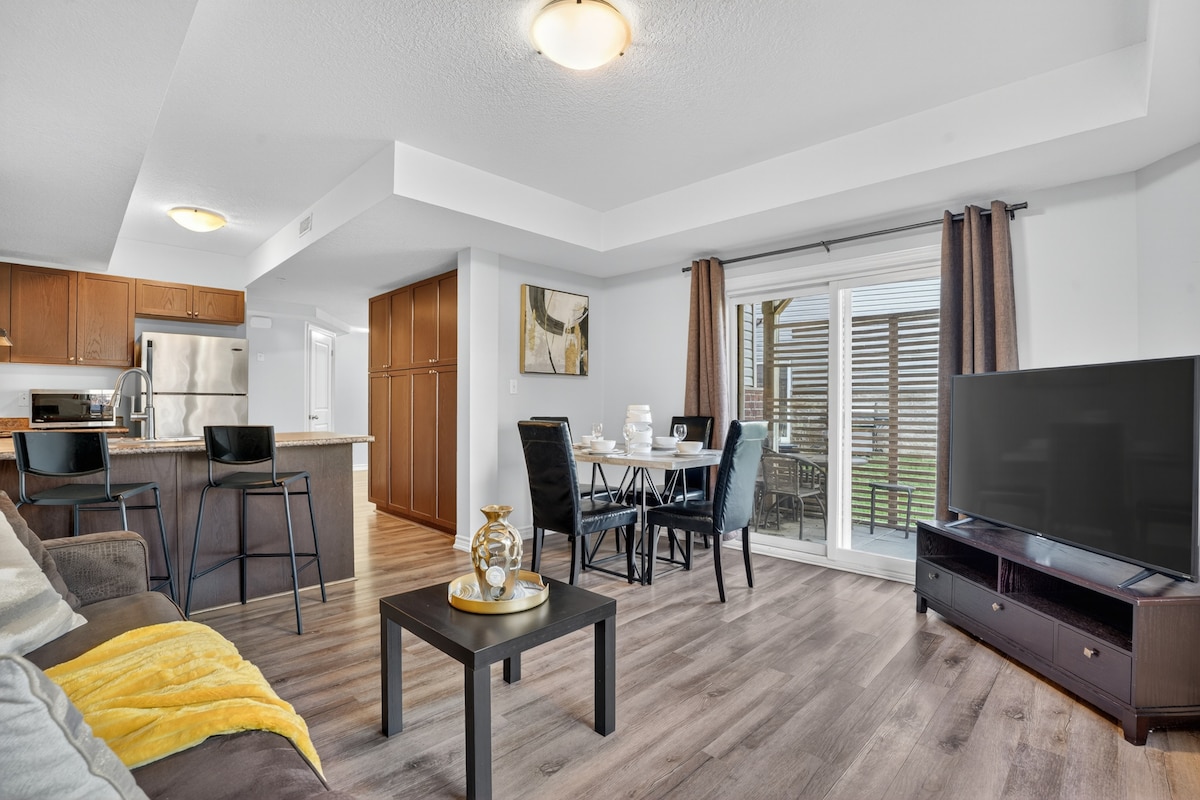 Dobro došli u naš otvoreni koncept nebodera sa pogledom na grad u srcu Kičener-Vaterloa, gdje se stil i udobnost spajaju kako bi se stvorio zaista nezaboravan boravak. Ova jedinica otvorenog tipa s 1 spavaćom sobom pažljivo je dizajnirana da primi do 4 gosta, što je čini savršenom za parove, male porodice ili putnike koji putuju sami i traže moderan i udoban smještaj. ✔ Potpuno opremljena kuhinja ✔ Udobna spavaća soba sa bračnim krevetom ( širine 150-179 cm Dnevni prostor✔ otvorenog koncepta ✔ Brzi Wi-Fi ✔ Besplatan parking ✔️Pristup teretani Saznajte više u nastavku!