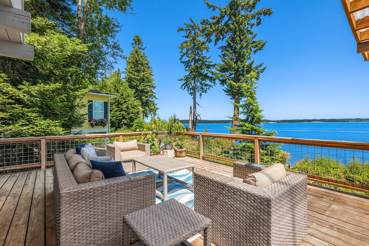 Dobro došli u svoj vrhunski privatni smještaj u PNW-u. Naša udobna kuća u obliku slova A sa 3 spavaće sobe čeka, smještena među drvećem sa daškom rustikalnog šarma. Pijuckajte jutarnju kafu dok slušate pjev ptica i pustite da se stres otopi. A kada padne veče, uvucite se u hidromasažnu kadu - topao zagrljaj s pogledom na kanal Hud je čisto blaženstvo. Izlazak i zalazak sunca oslikavaju nebo u nijansama zlata i indiga, stvarajući očaravajuće platno koje se mijenja sa svakim trenutkom.