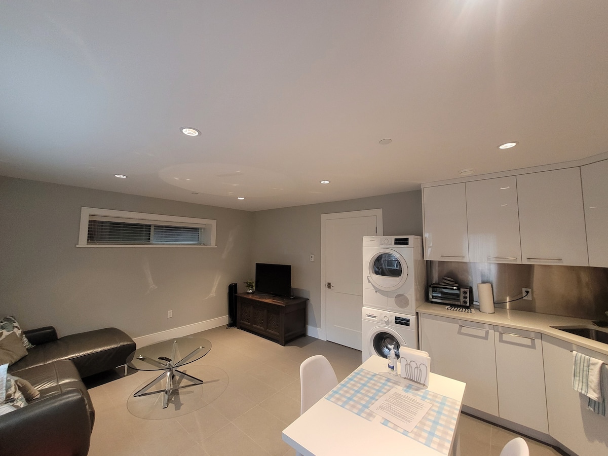 Bez deljenja prostora. U kompletima, nekoliko minuta od centra grada i UBC-a, ovaj privatni prostor sa 1 spavaćom sobom savršen je za one koji žele da uživaju u Vankuveru. Dostupno pješke do autobuske stanice, supermarketa, restorana i prodavnica. Zaseban ulaz, prelijepa čajna kuhinja za jednostavno podgrijavanje i lagano kuvanje hrane sa Instapot-om ili pločom za kuvanje, mašinom za pranje i sušenje veša, kadom za opuštanje. Svoje omiljene emisije možete da gledate sa Netflix-a i Amazona kada se prijavite i gledate na TV-u. Spoljašnji prostor za šoljicu kafe ili obrok kada je lijepo vrijeme.