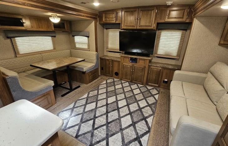 Sve je čisto i hrskavo! Neke od naših najboljih uspomena su u jednostavnim trenucima. Nudimo udoban, udoban, svjež i čist boravak u našoj novoj putničkoj prikolici postavljenoj u našem objektu. Naša 6' sigurna ograda pruža prostor za istraživanje našeg velikog dvorišta u stilu farme. Velika terasa sa sjedećom garniturom dostupnim našim gostima. Mi smo mirna, udobna i sigurna četvrt u blizini svih zabavnih sadržaja koje Venači nudi! Do parka, restorana i kafića možete doći pješice!