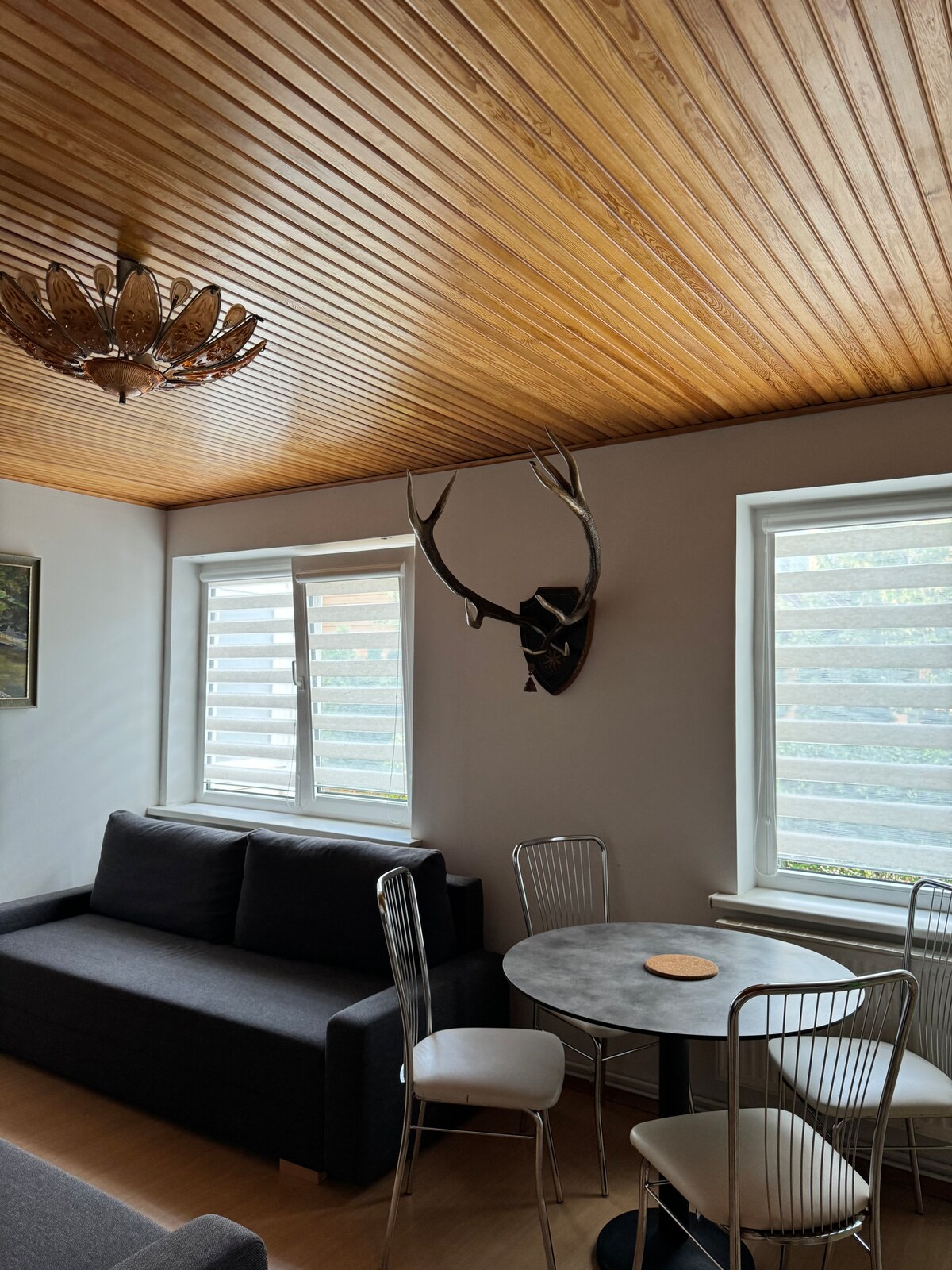 Tražite miran odmor u Šventojiju? Pozivamo vas u udoban dom bake Onutė, gdje praznici podsjećaju na ljeta iz djetinjstva – bez žurbe, uz lagane vjetrove, cvrkut ptica i staru baštu. To je samo kratka šetnja do mora, a ujutro će vas dočekati roda kako biste došli do gostiju. Ovdje ćete pronaći sve što vam je potrebno za miran odmor: udobne sobe, udobnu čajnu kuhinju, terasu za jutarnju kafu ili veče pod zvijezdama. Sve je spremno da uživate u miru i tišini.