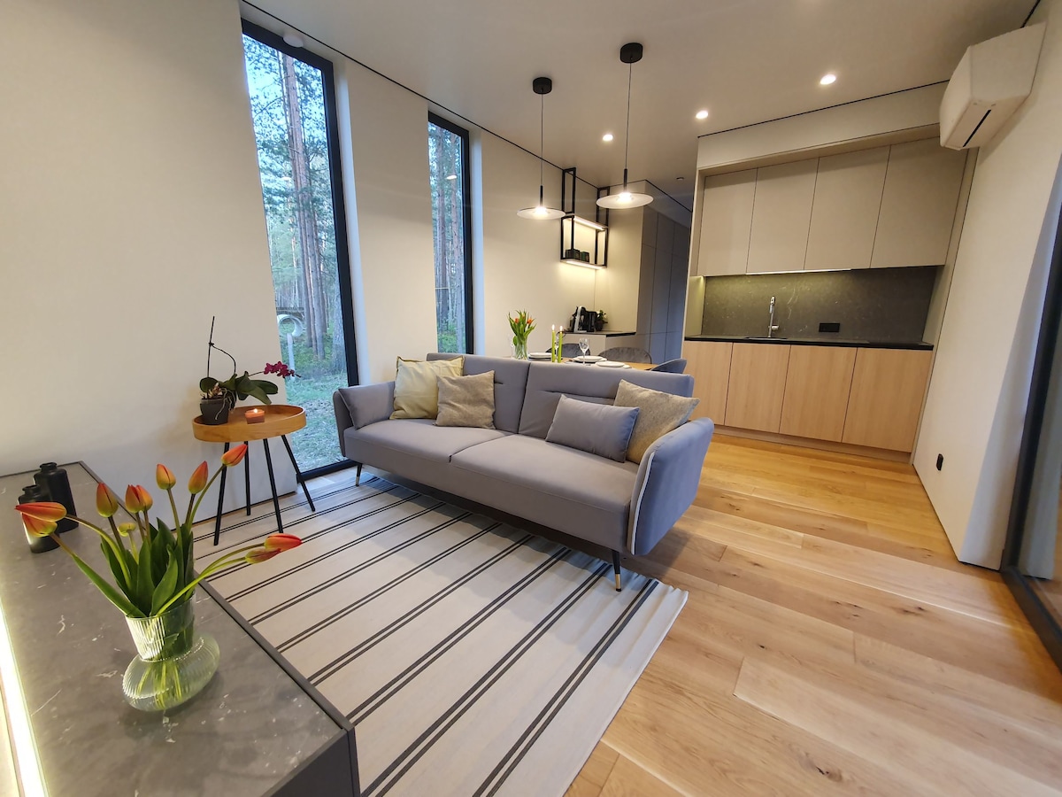 Prostrana i moderna drvena kuća nalazi se pored puta A2 (E77) - Riga i Sigulda udaljeni su 15 minuta, a Nacionalni park Gaujas ~ 30 minuta vožnje. Cijela kuća je vrlo dobro opremljena i na raspolaganju vam je (osim jedne sobe), kao i oprema za roštilj, stoni tenis, bobice, pečurke, bašta, kamin, zabava i još mnogo toga :) Put obično ne smeta gostima, ali imajte na umu postojeće zvukove prevoza, tako da je ovo mesto u prirodi sa nekim urbanim dodirom.