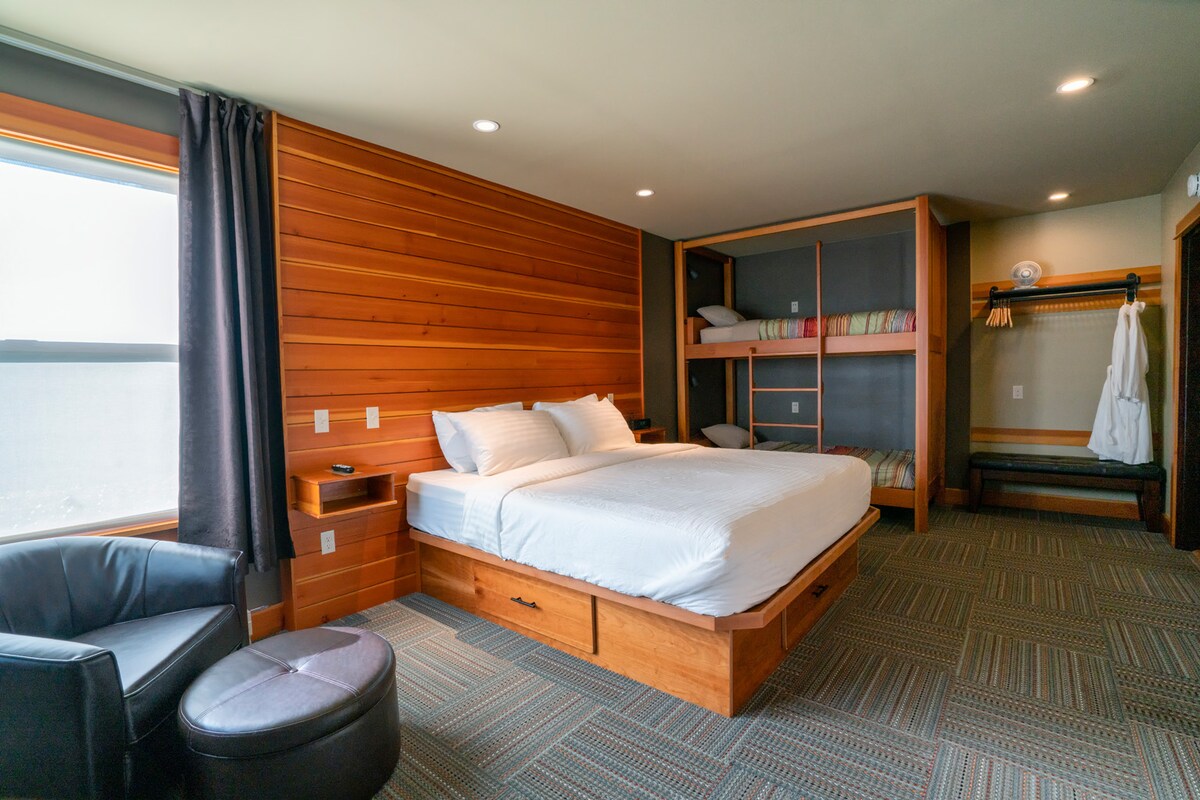 Ovaj bračni apartman je savršen za porodični odmor ili grupu prijatelja sa dodatnim krevetima i dovoljno prostora. Pored bračnog kreveta, tu je i komplet prilagođenih kreveta na sprat. Dopašće vam se prirodno svjetlo, dovoljno prostora i svi standardni sadržaji, uključujući kupatilo sa tuš-kabinom i čajnu kuhinju. The Inn of the White Salmon is quiet, pristine, and centrally located to all of the Gorge's attractions. Imaćete i pristup zajedničkim baštama i zajedničkoj sobi.